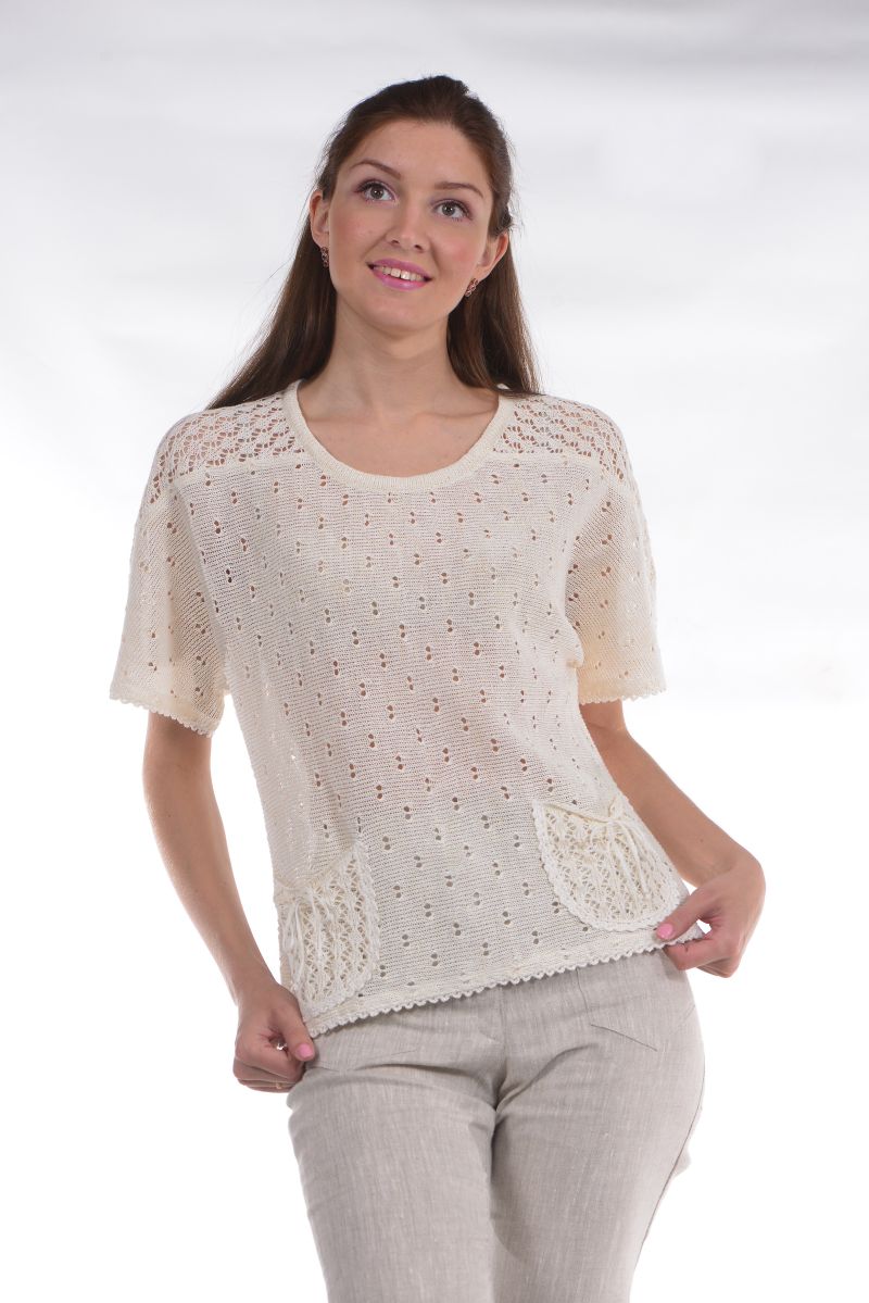 Описание: Джемпер с карманами, линия плеча спущена, трикотаж с ажуром