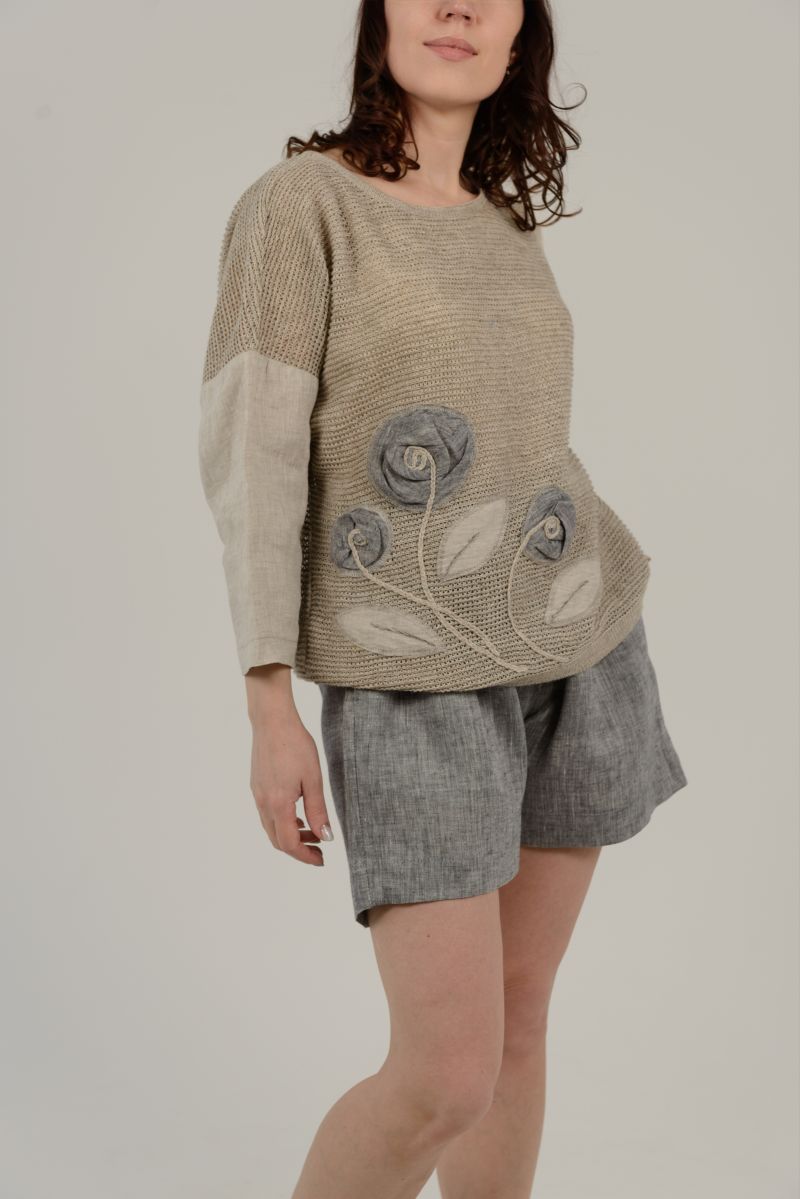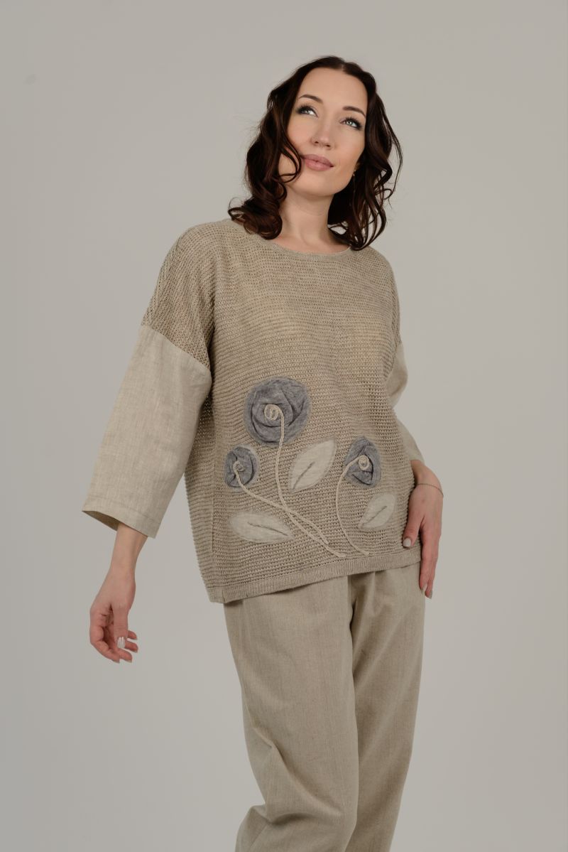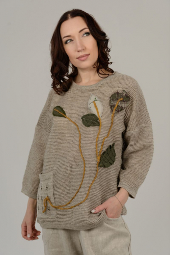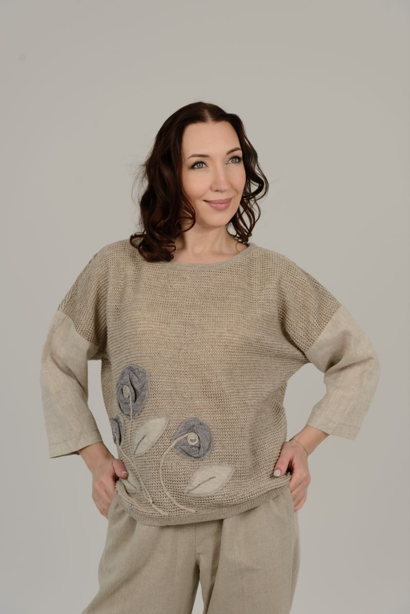 Описание: Джемпер, трикотаж с тканью, отделка.