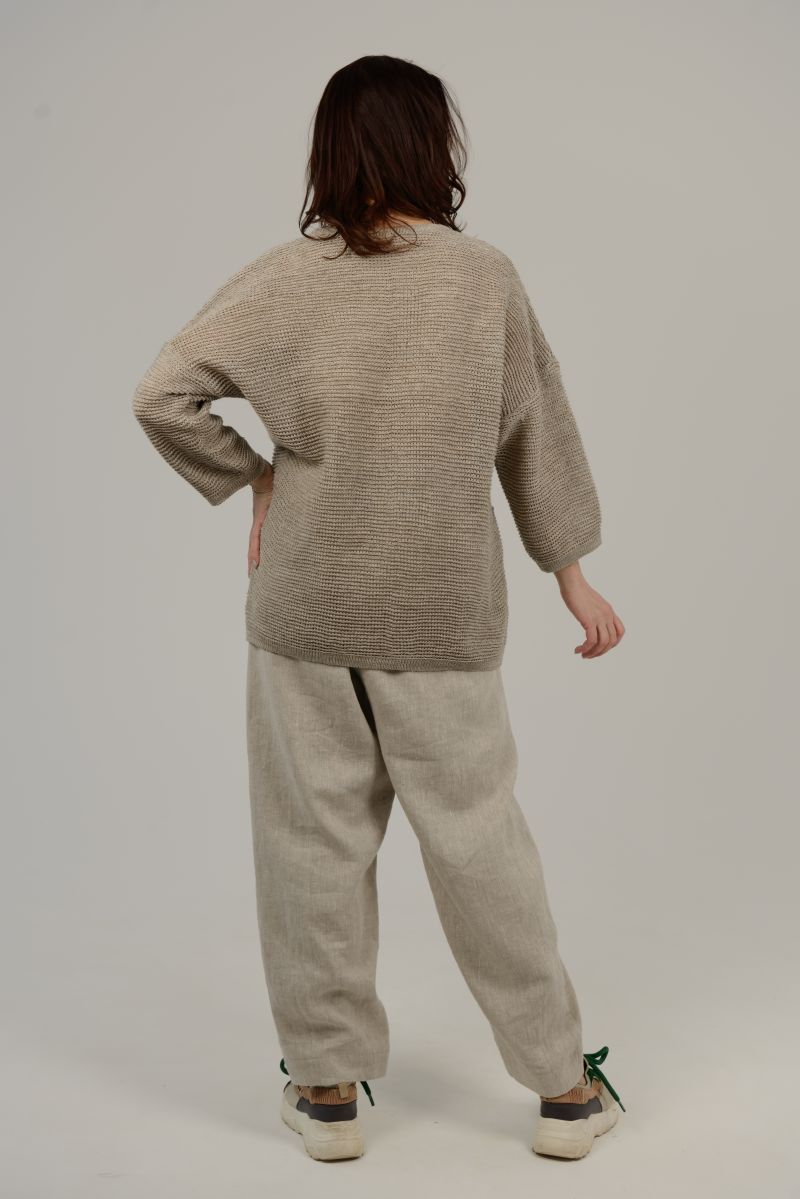 Описание: Джемпер, линия плеча спущенная, один карман, отделка, трикотаж.