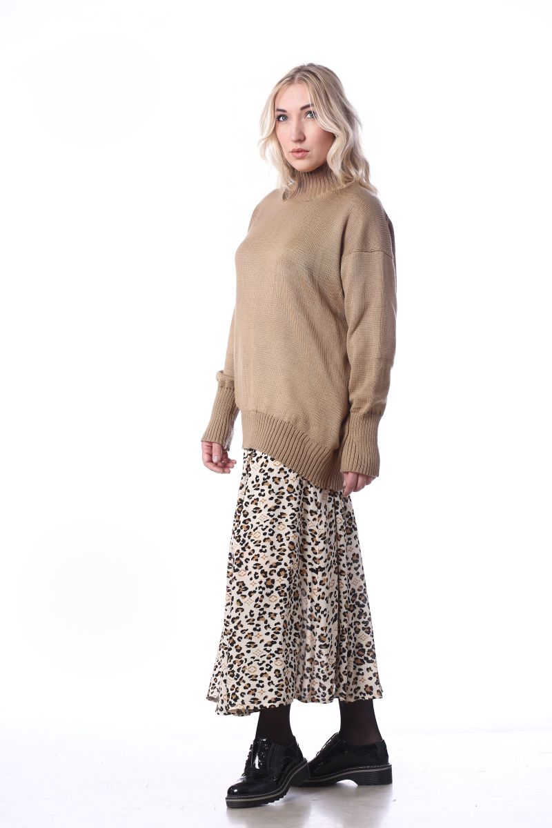 Описание: Джемпер свободного силуэта, воротник стойка, трикотаж внизу резина