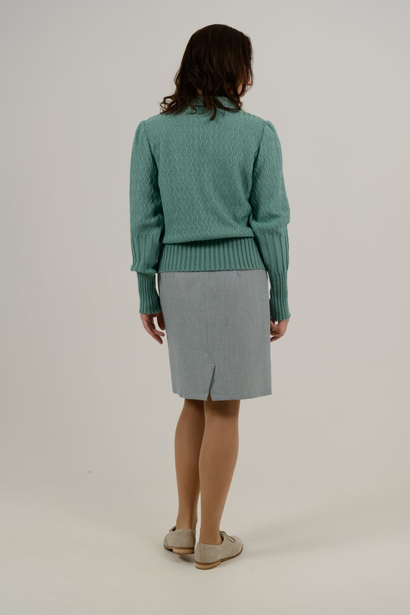 Описание: Джемпер с воротником, длинный рукав, трикотаж, внизу резина.