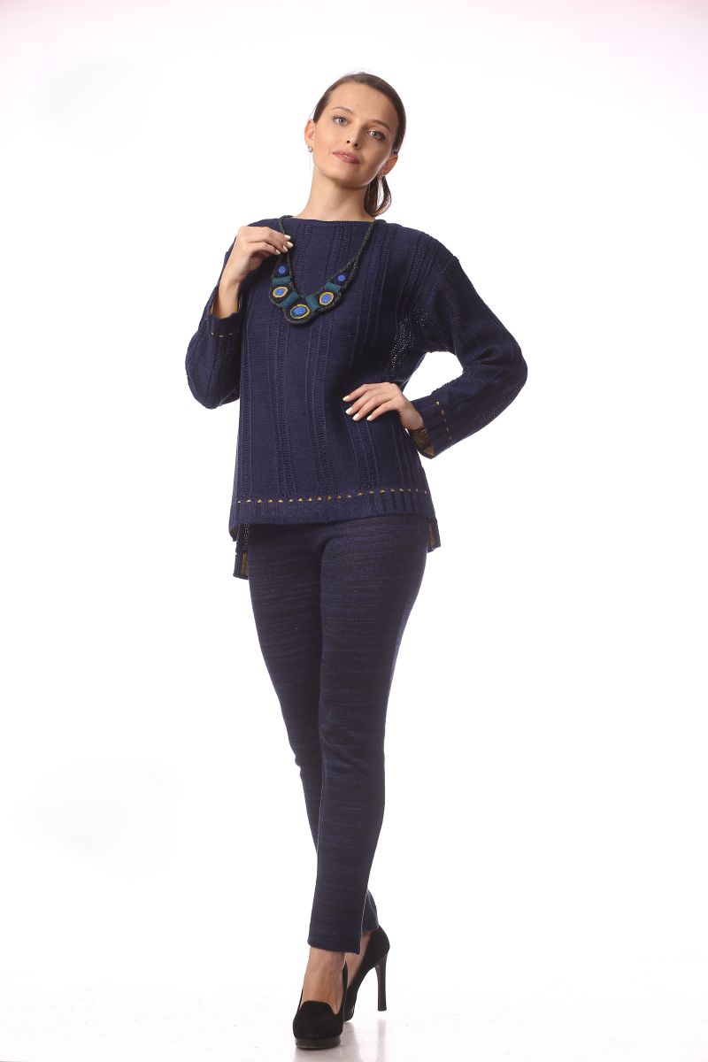 Описание: Джемпер со съемным воротником хомут, удлиненная спинка, трикотаж,