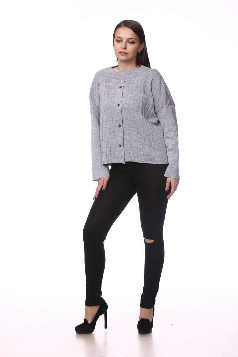 Описание: Джемпер плиссе, отделка пуговицы, трикотаж меланж