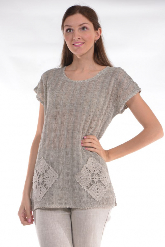 Описание: Джемпер с поясом, длинный рукав, линия плеча спущена, трикотаж меланж