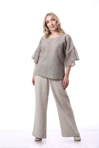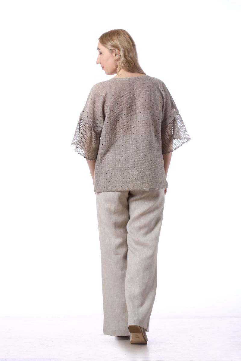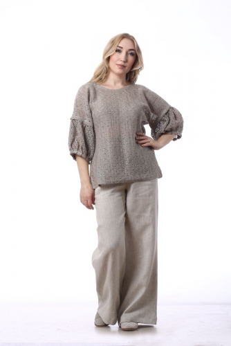 Описание: Джемпер, линия плеча спущена, с ажурным воланом, по бокам разрезы, трикотаж