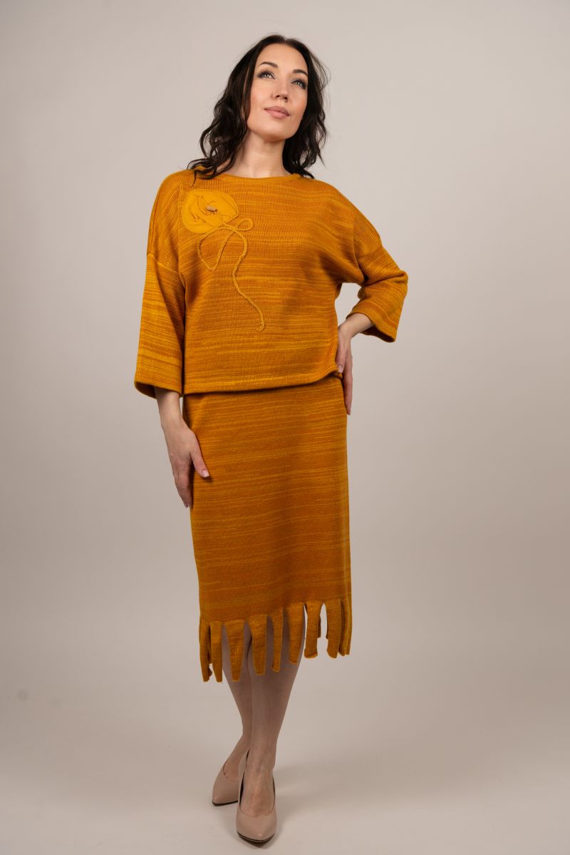 Описание: Джемпер с рукавом, линия плеча спущена, отделка, трикотаж.