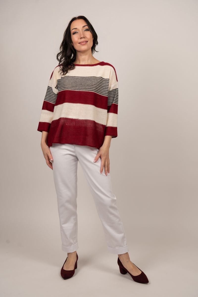 Описание: Джемпер с рукавом, линия плеча спущена, трикотаж полосы.