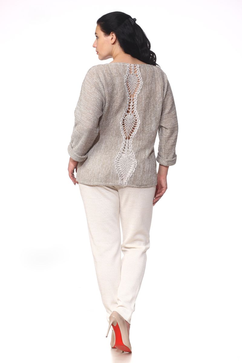 Описание: Джемпер с кружевной вставкой на спинке, украшение бусы, трикотаж,