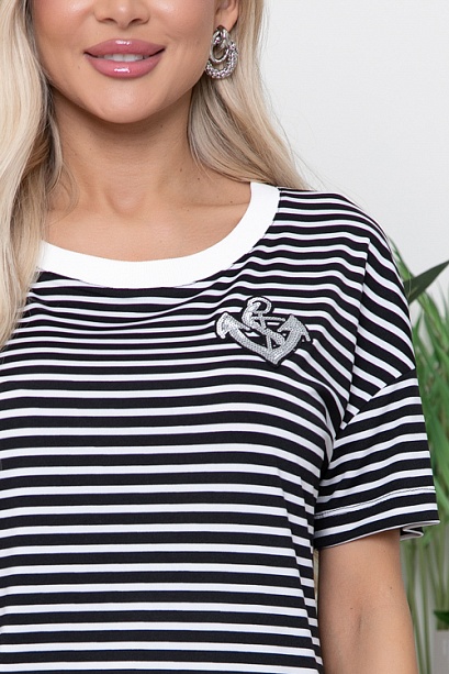Блузка из комфортного трикотажного полотна свободного силуэта.Горловина из  хлопковой трикотажной рибаны.(Рибана производство Турция).По полочке декоративный элемент-якорь.