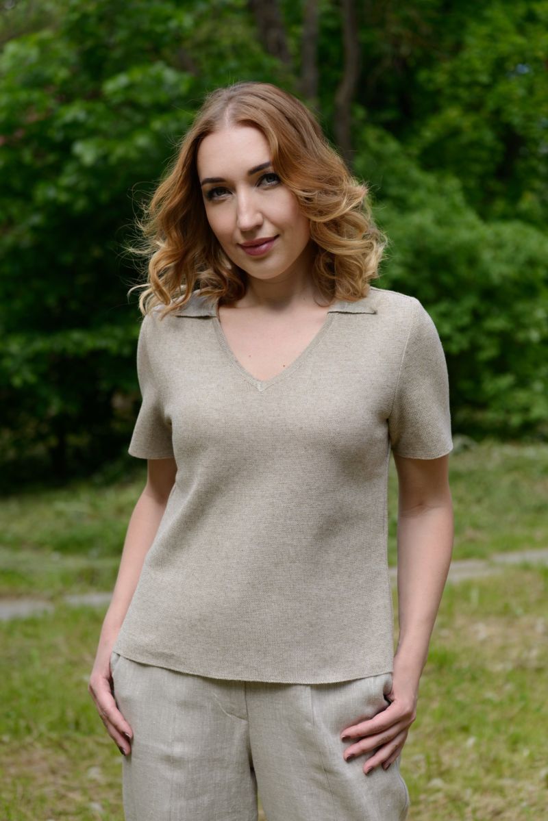 Описание: Джемпер с коротким рукавом, воротник, трикотаж.