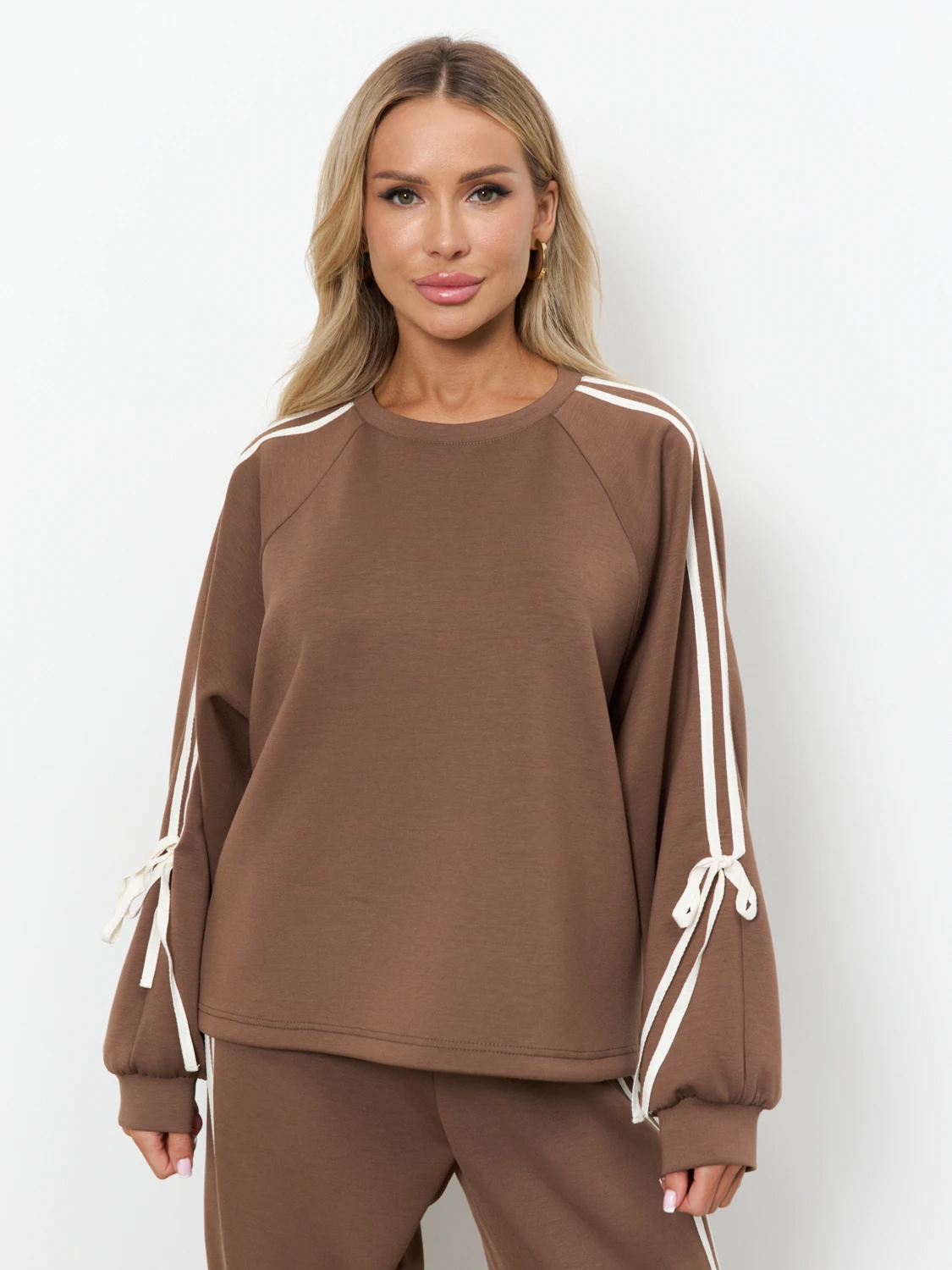 Рукав от горловины декорирован лампасами.