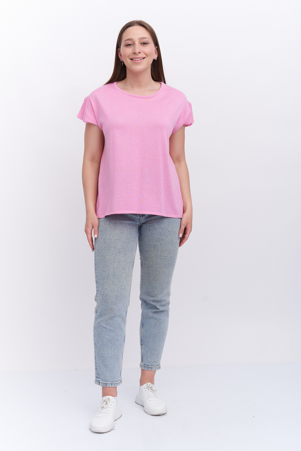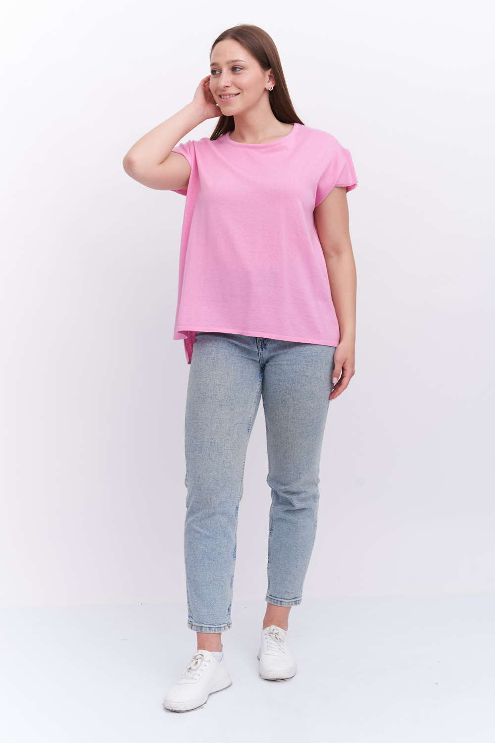 Легкий трикотажный джемпер со спущеной линией плеча и круглой горловиной. Выполнен из пряжи, в составе которой 50% хлопка, что позволяет носить его как базовую вещь летом, либо весной и осенью под пиджак. В джемпере будет Вам комфортно на прогулках в теплое время года. Джемпер прямого силуэта подойдет для любого типа фигуры и составит оригинальный, модный и женственный образ абсолютно с любым низом: юбка, брюки, джинсы. розовый