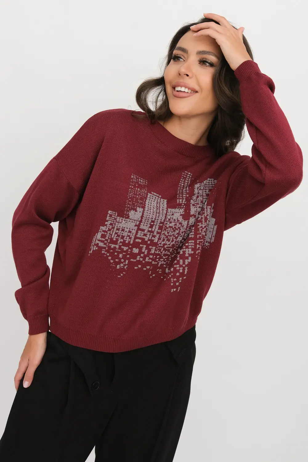 Рекомендуем к джемперу юбку Д3523 и брюки Д3521. бордо