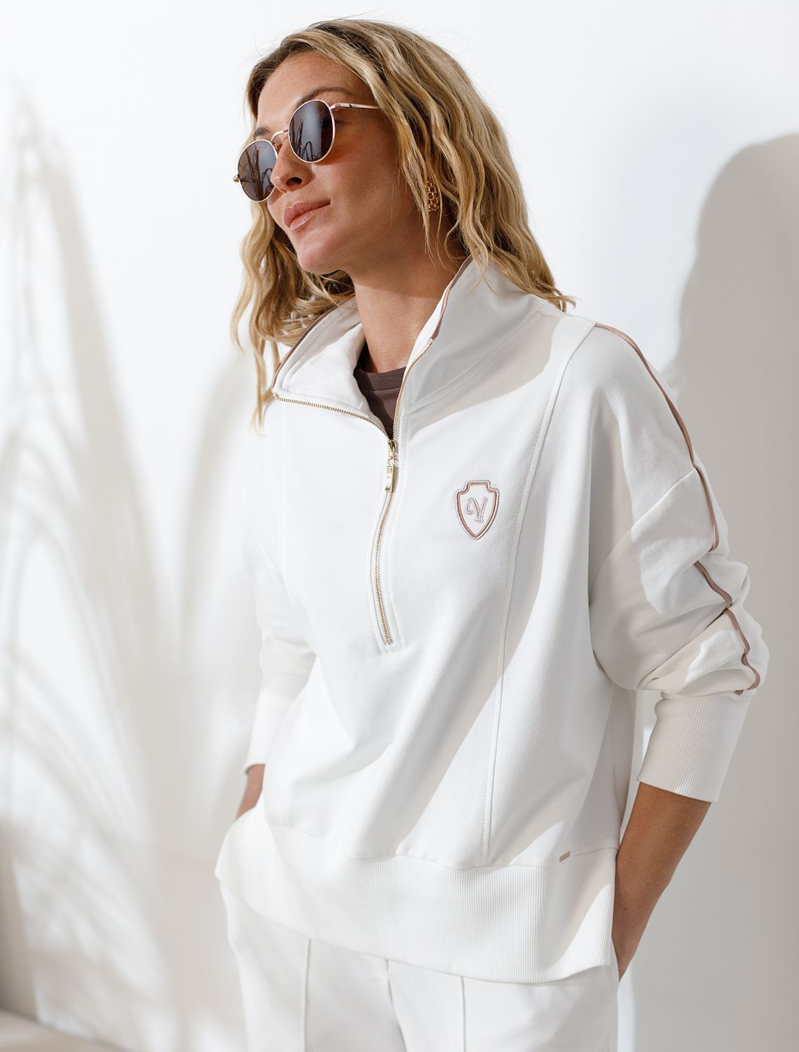 Джемпер белого цвета с воротом на молнии выполнен из футера двухнитки с эластаном 240 Г/м2. Натуральный хлопок обеспечивает мягкость и оптимальный теплообмен весной и летом. Нежный материал дарит ощущение уюта, а премиальное качество изготовления гарантирует долговечность и сохранение формы после множества стирок. Особенность свитшота - контрастные тонкие лампасы, которые добавляют современный акцент и делают образ более выразительным. Аккуратная вышивка в виде логотипа бренда, расположенная на груди, придает свитшоту индивидуальности без лишней вычурности. Представлена широкая размерная линейка, включая маленькие и большие размеры, что позволяет подобрать идеальный вариант для разной фигуры .Этот уютный свитшот на молнии отлично подходит для повседневной носки благодаря своей комфортной посадке и нежной текстуре. Свободный джемпер из футера станет идеальным выбором для активного отдыха, обеспечивая стильный внешний вид и удобство.