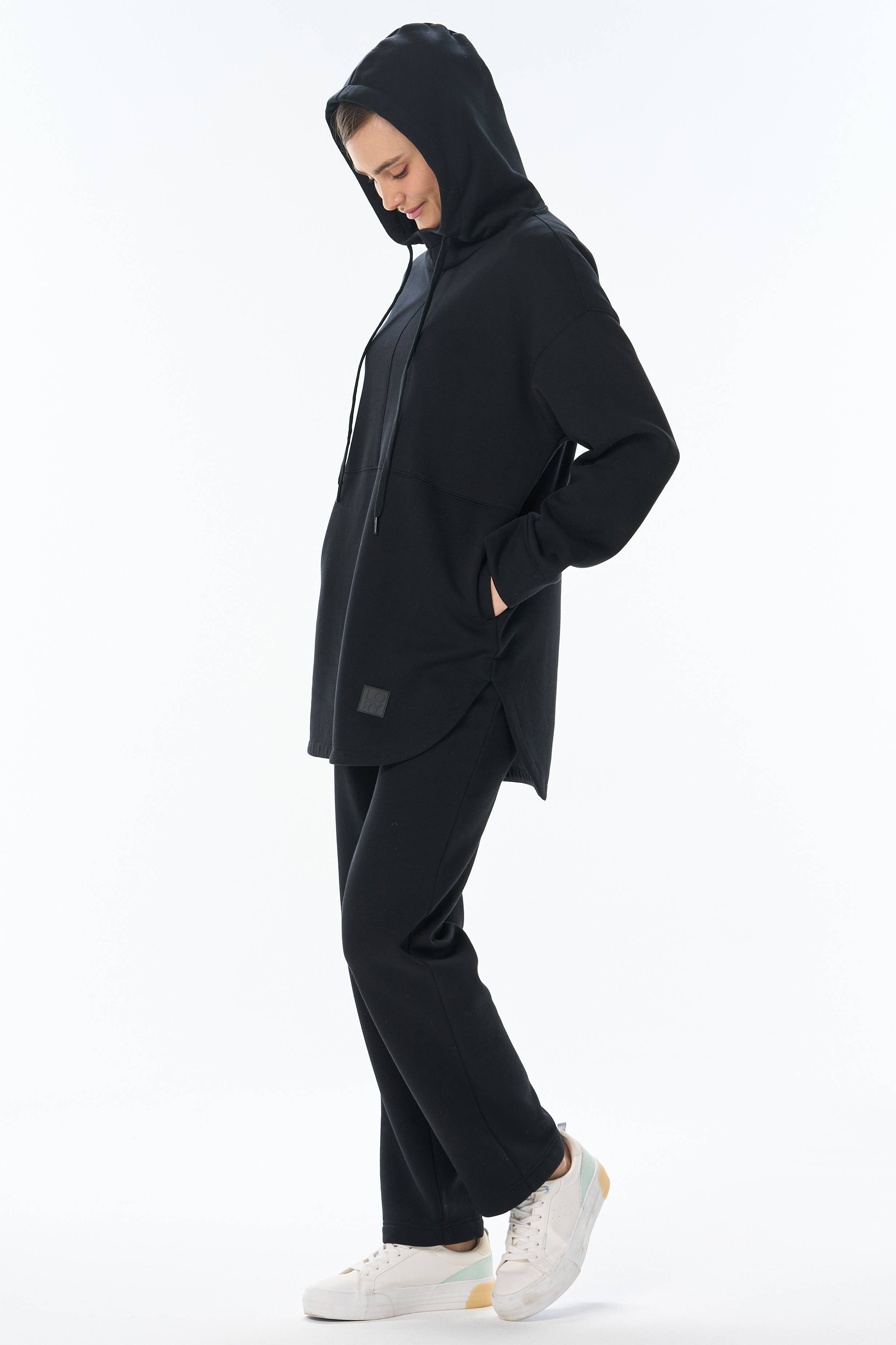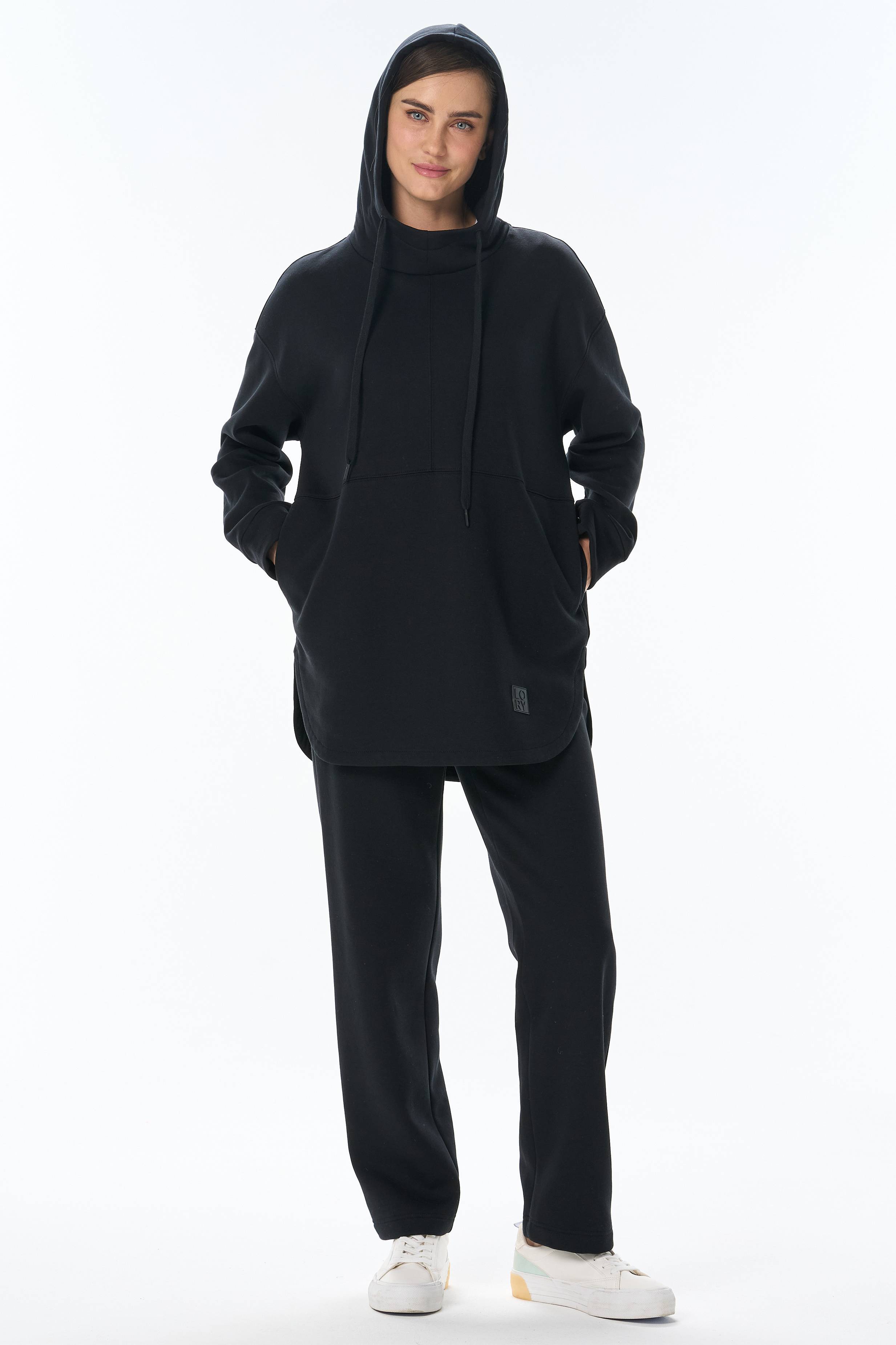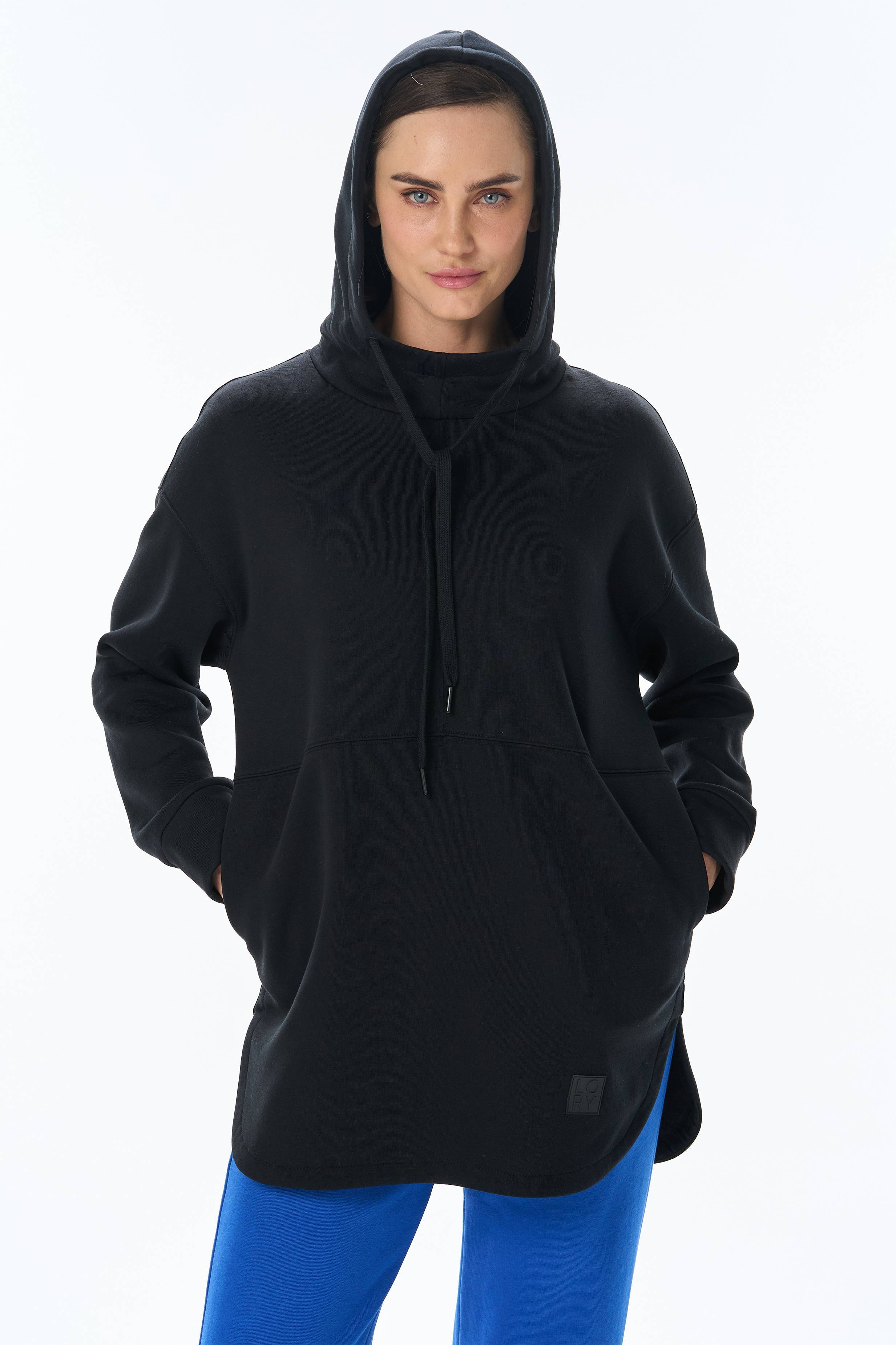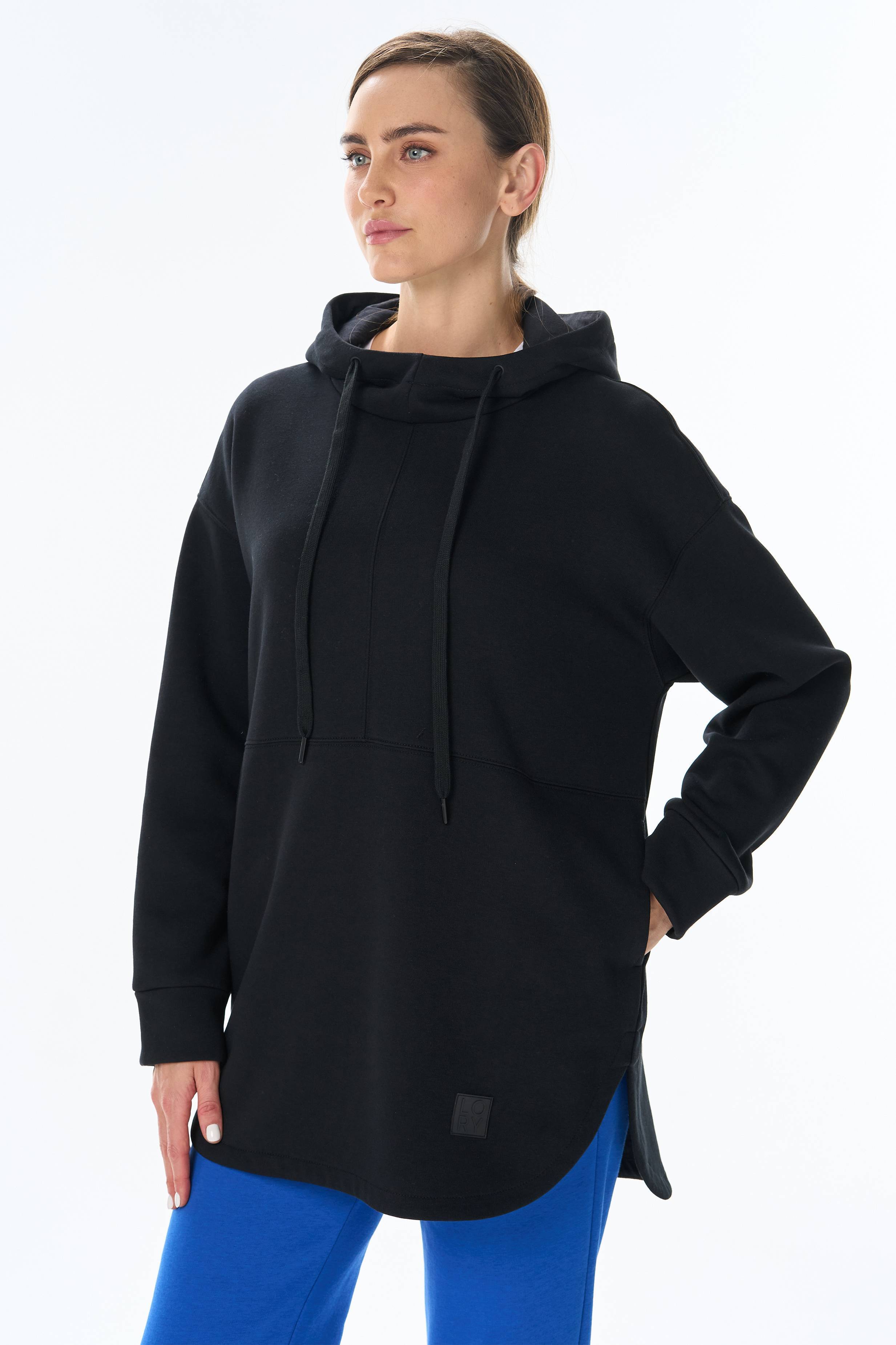 Худи из хлопкового футера высокого качества 3-х нитки стриженный начес с капюшоном, в рельефных швах карманы. По низу рукавов манжеты. Фигурная линия низа. Рост модели на фото 177 70% хлопок, 30% полиэстер