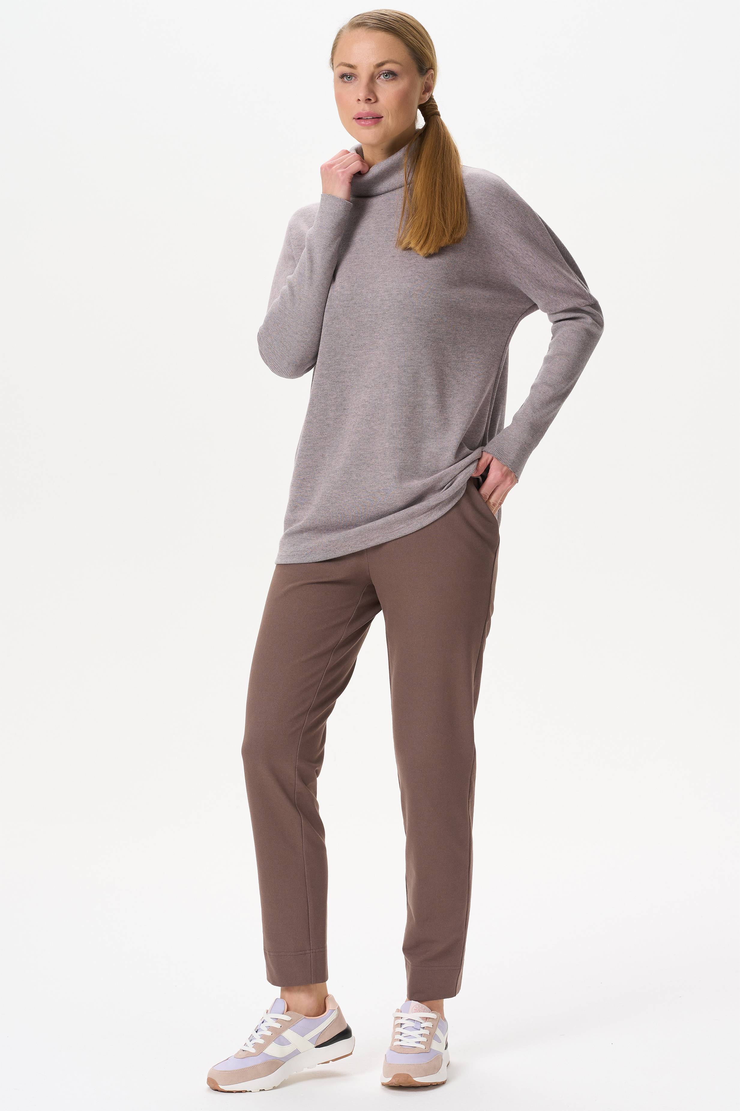 65% хлопок/ 35% полиэстер Джемпер из хлопкового полотна свободного силуэта. Мягкий воротник - стойка. Спущенная линия плеча, втачные рукава. Воротник и рукава выполнены из кашкорсе. Рост модели на фото 177.