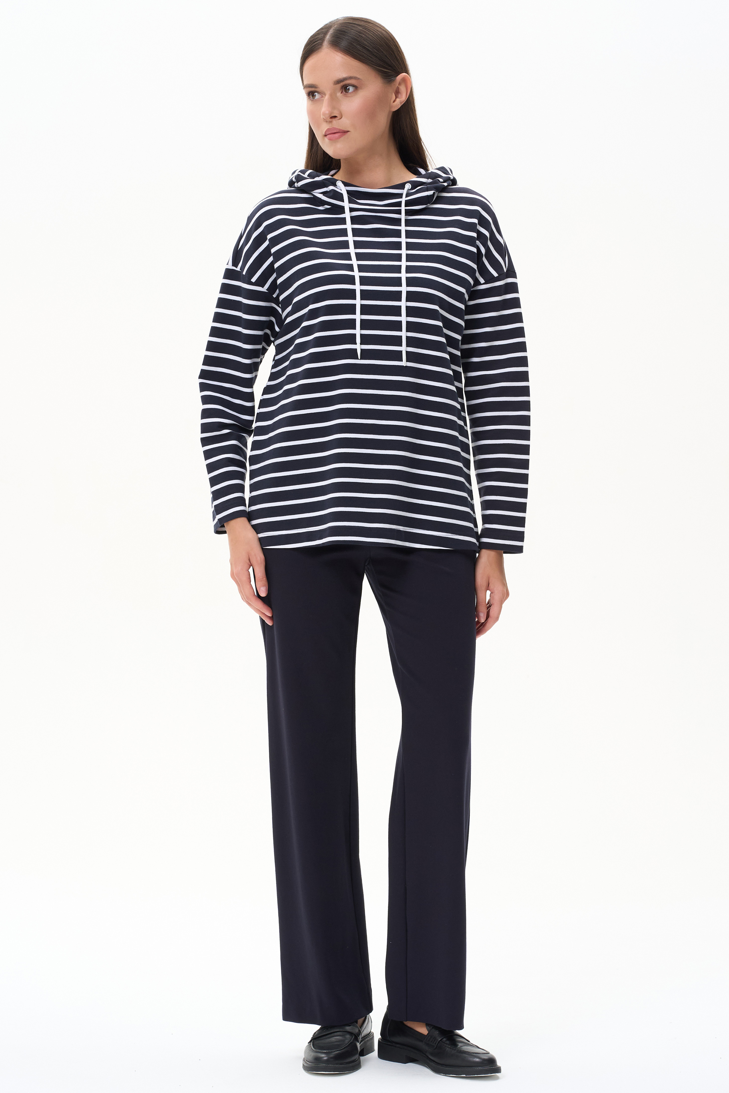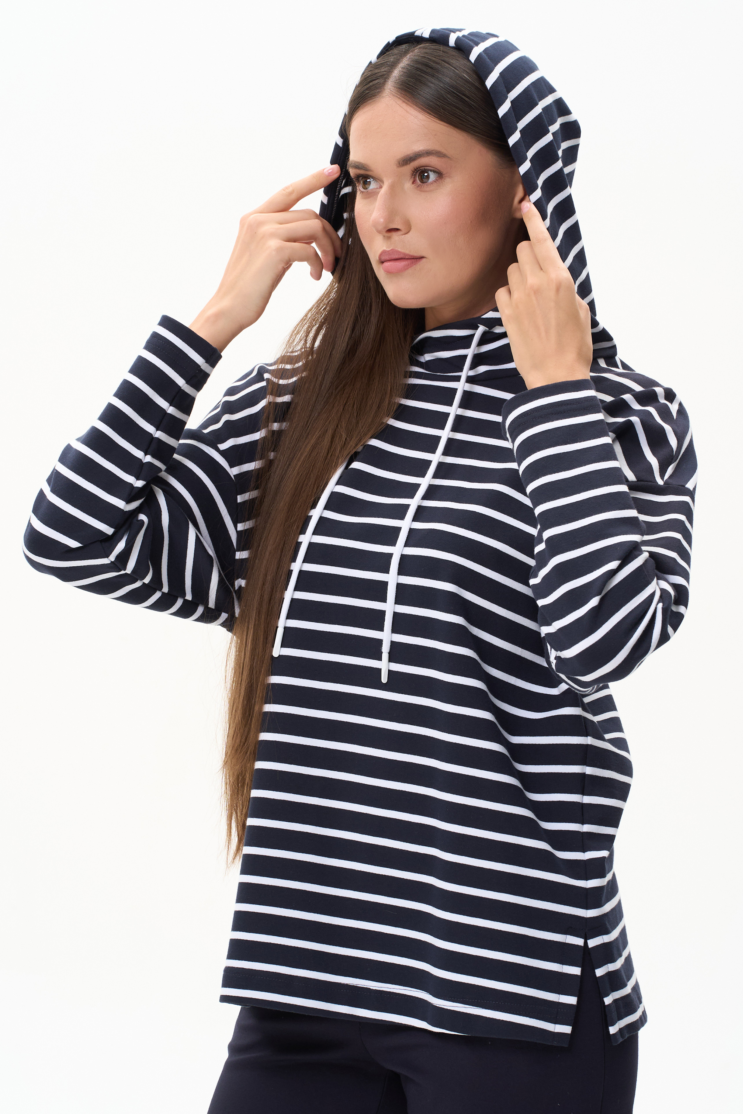 92% хлопок/ 8% эластан Джемпер из футера 2х нитки с эластаном, длиной до середины бедра имеет объёмный капюшон. Длинные втачные рукава, по низу в боковых швах разрезы. Рост модели на фото 170
