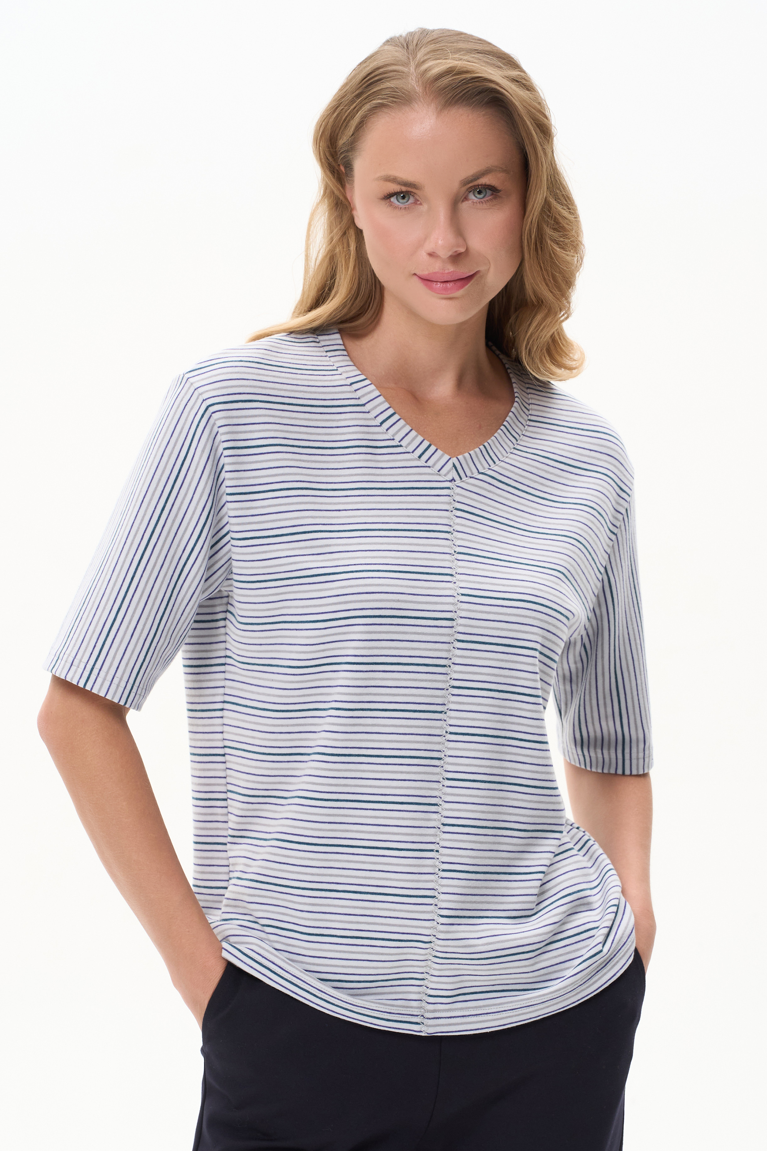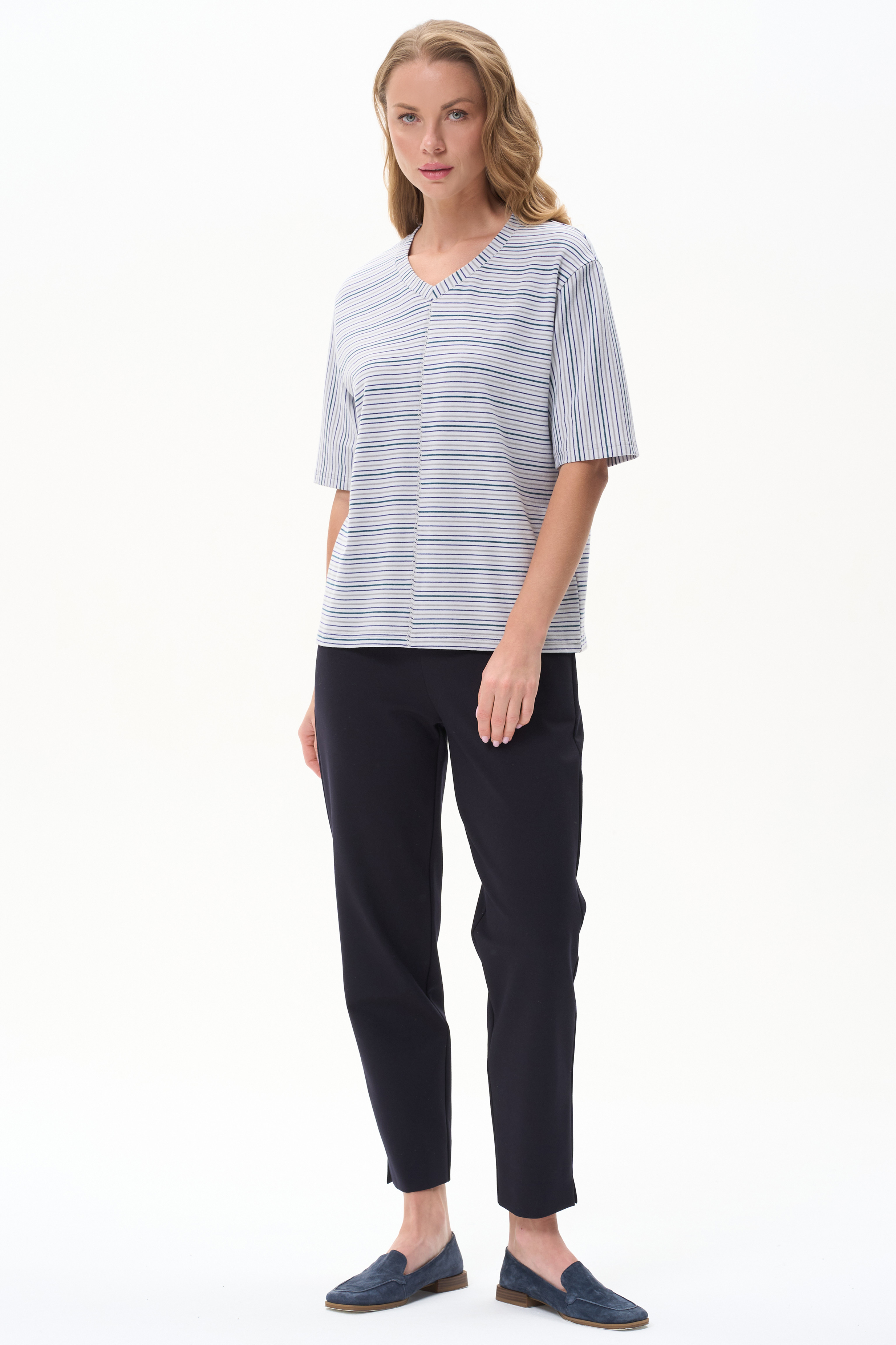 83% хлопок/15% полиэстер/ 2% эластан Джемпер с коротким рукавом из вязаного плотного двустороннего полотна. Хлопковый состав с небольшим добавлением ПЭ даёт мягкость и ощущение теплоты. Тактильно очень приятное.