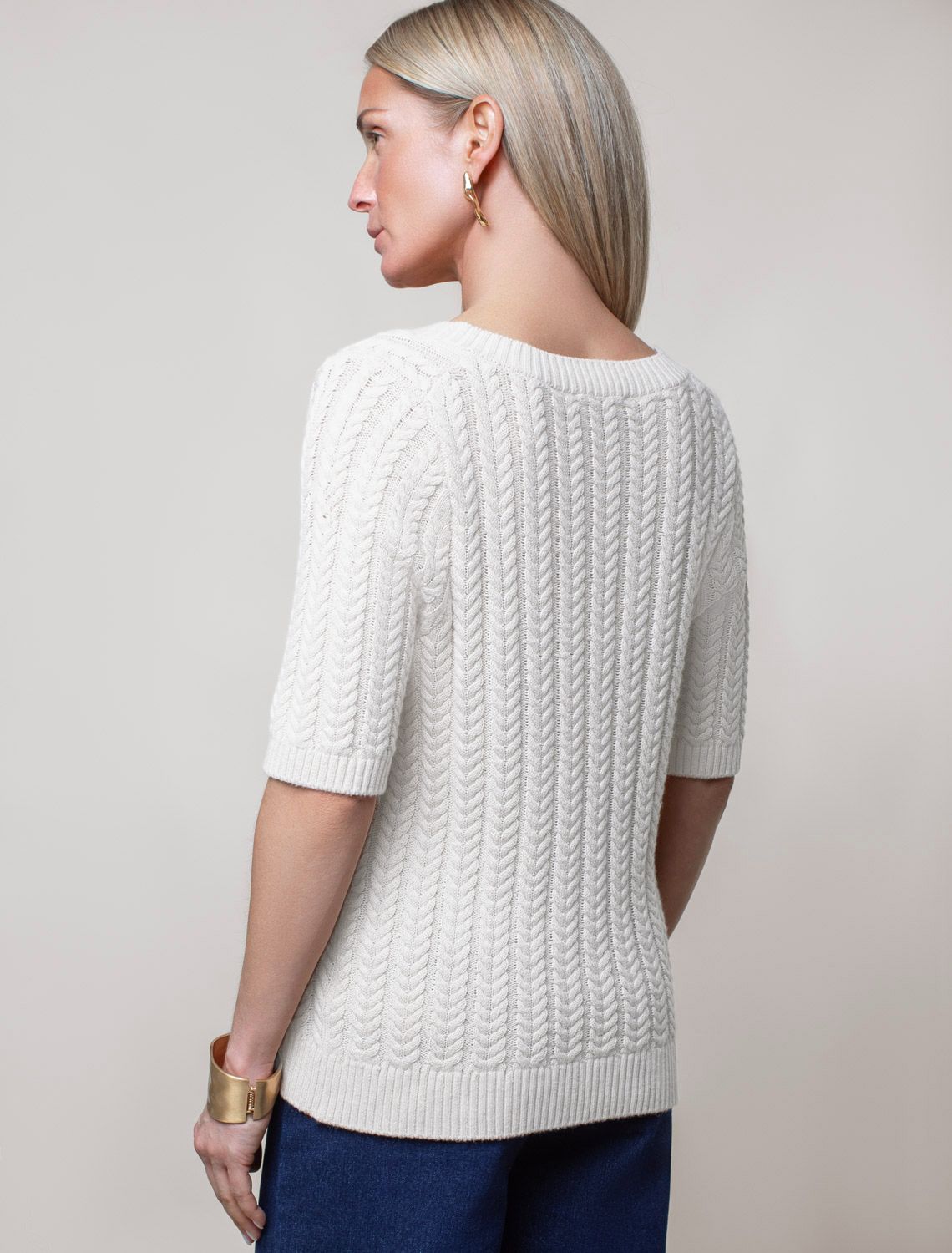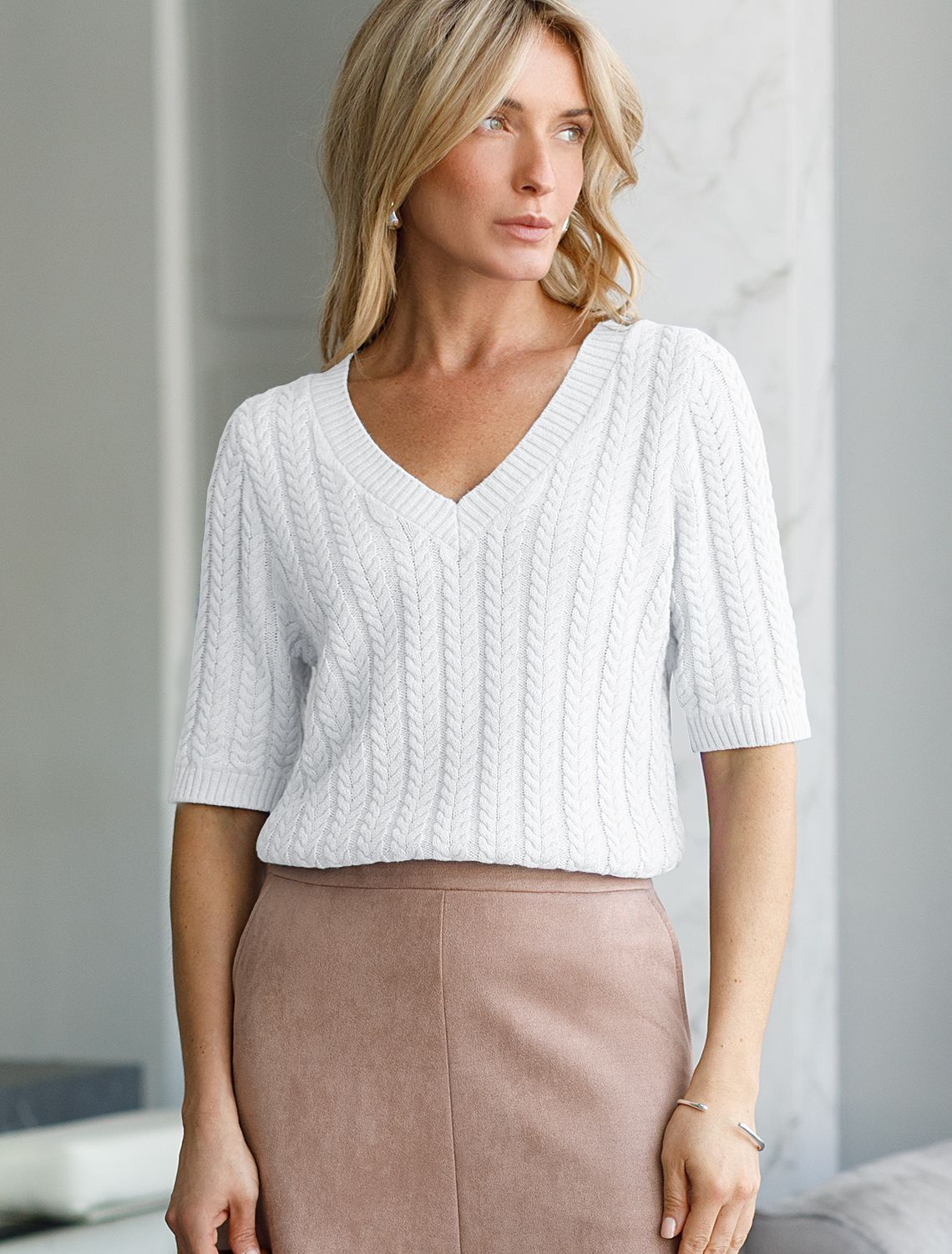 Джемпер фактурной вязки из хлопка с кашемиром D39.349 натуральный белый
