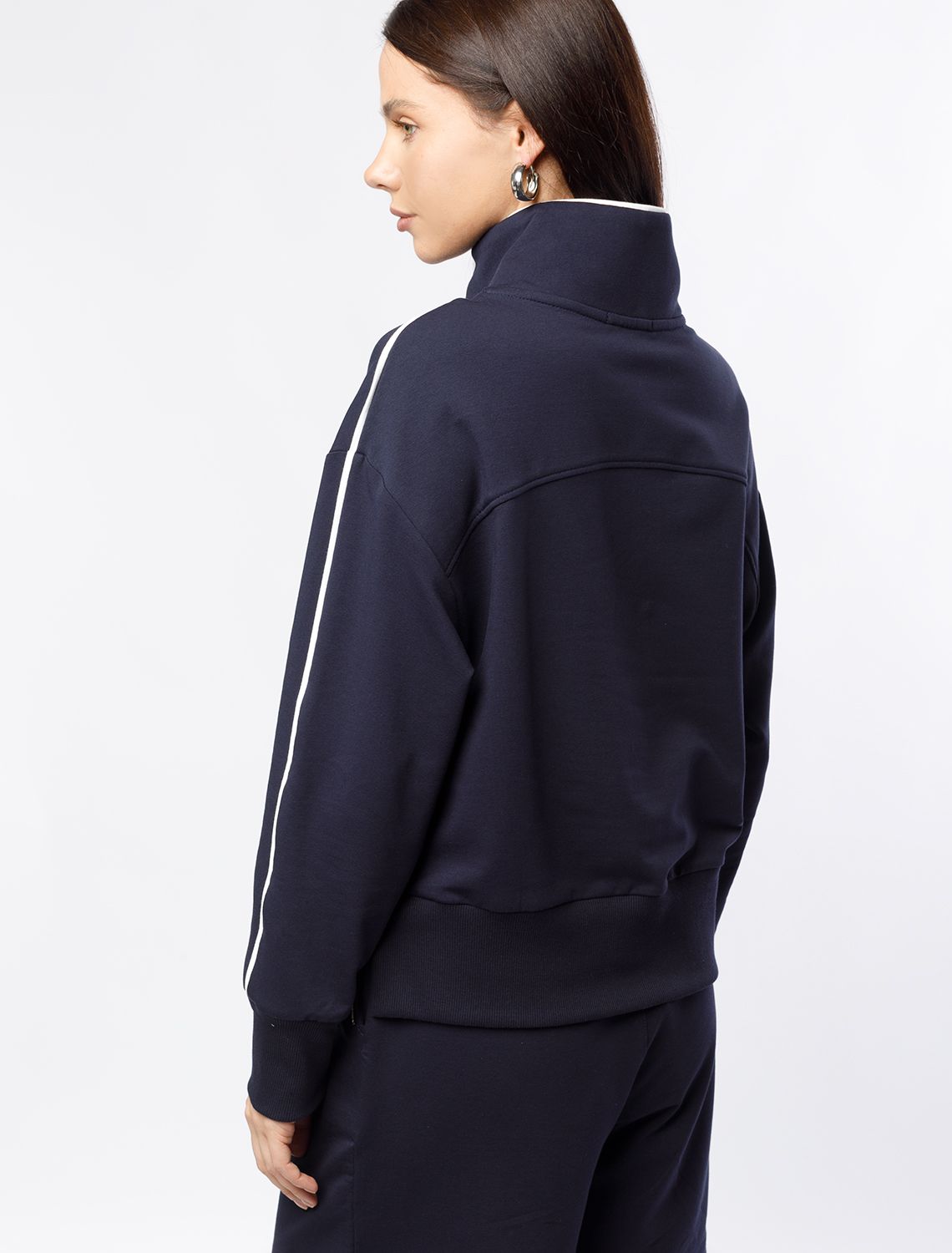 Джемпер из эластичного футера двухнитки с воротом на молнии D49.086 т.синий