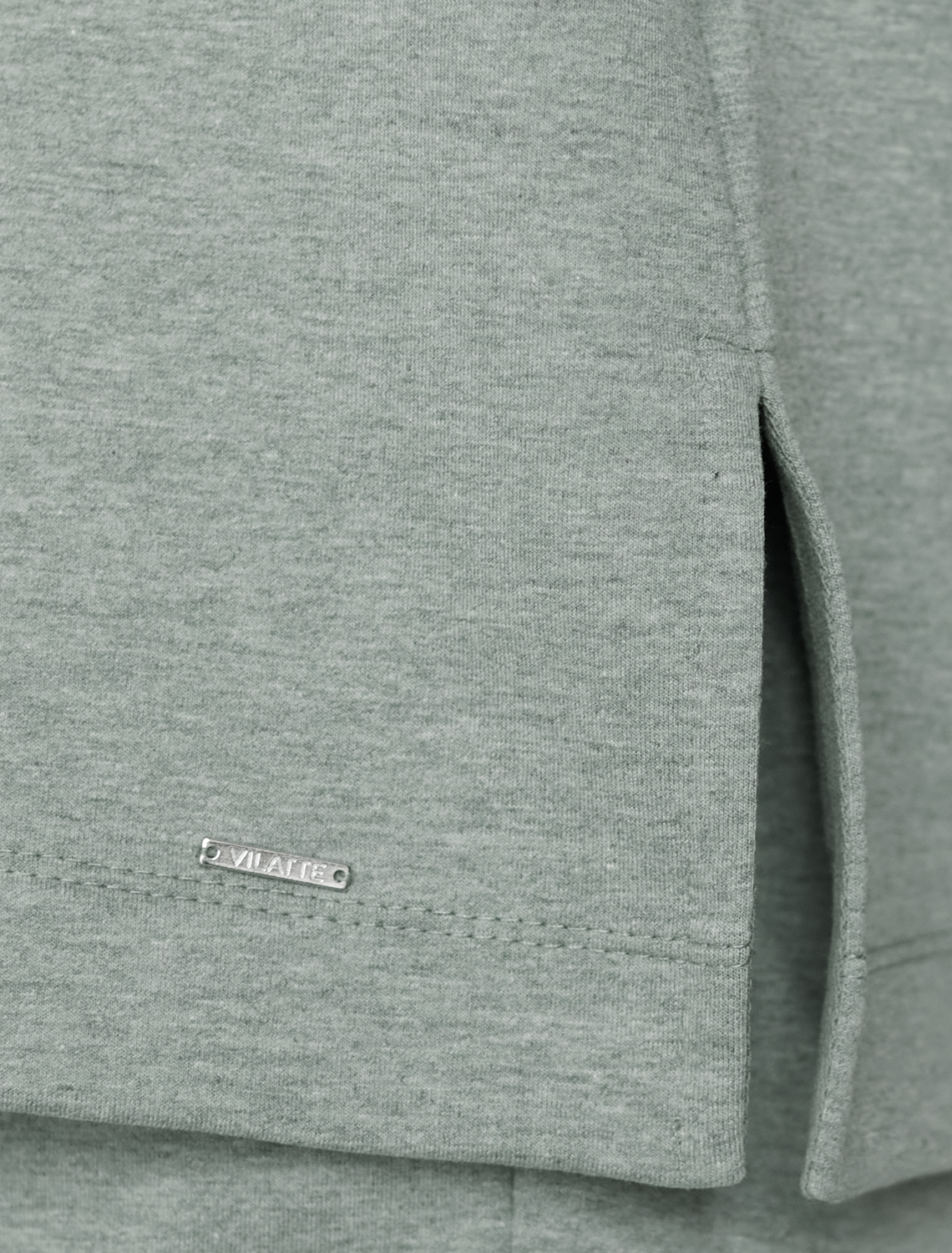 Джемпер со спущенной линией плеча выполнен из премиального хлопка. Модель дополнена разрезами по бокам. Мягкий эластичный хлопковый трикотаж гарантирует исключительный комфорт и уют дома. Идеально сочетается в костюме с шортами D48.006, брюками D44.120 и леггинсами D44.131 оливковый меланж