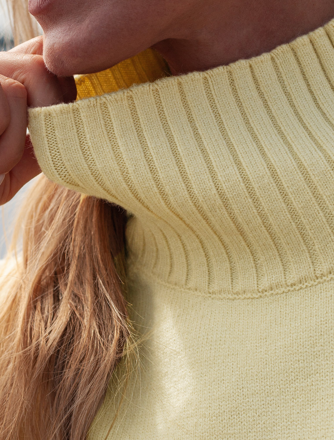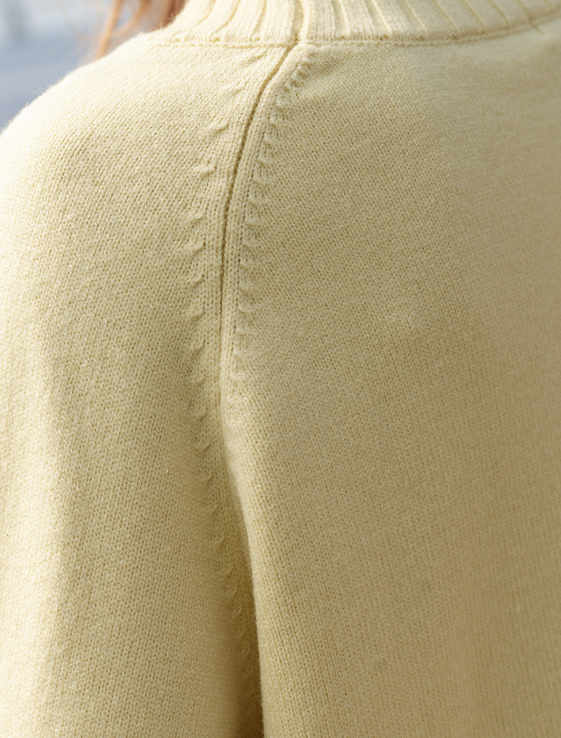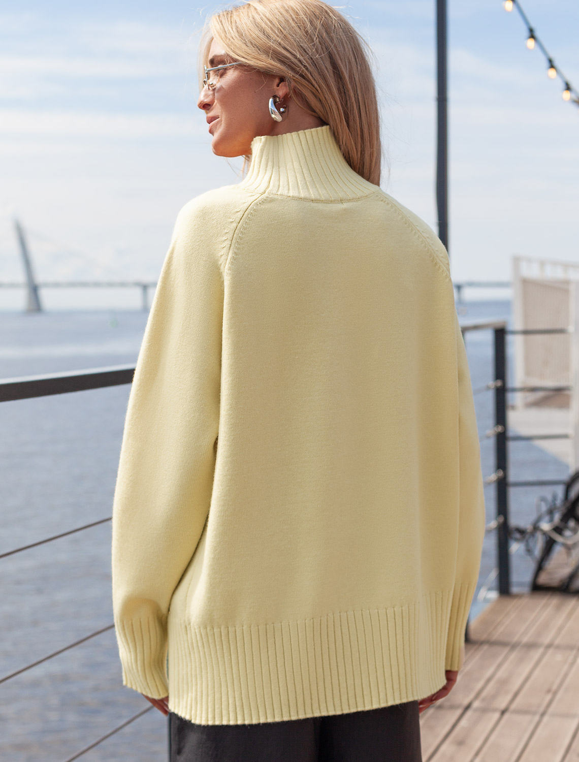 Джемпер с воротом стойка выполнен из мягкой пряжи с кашемиром. Модель свободного силуэта с рукавом реглан будет стильно сочетается с брюками и джинсами. Мягкая пряжа очень приятная к телу, поддержит комфорт на протяжении всего дня, при этом не перегревая. Сочетается в костюме с брюками D38.013, D38.012 и юбкой D36.016 светло-желтый