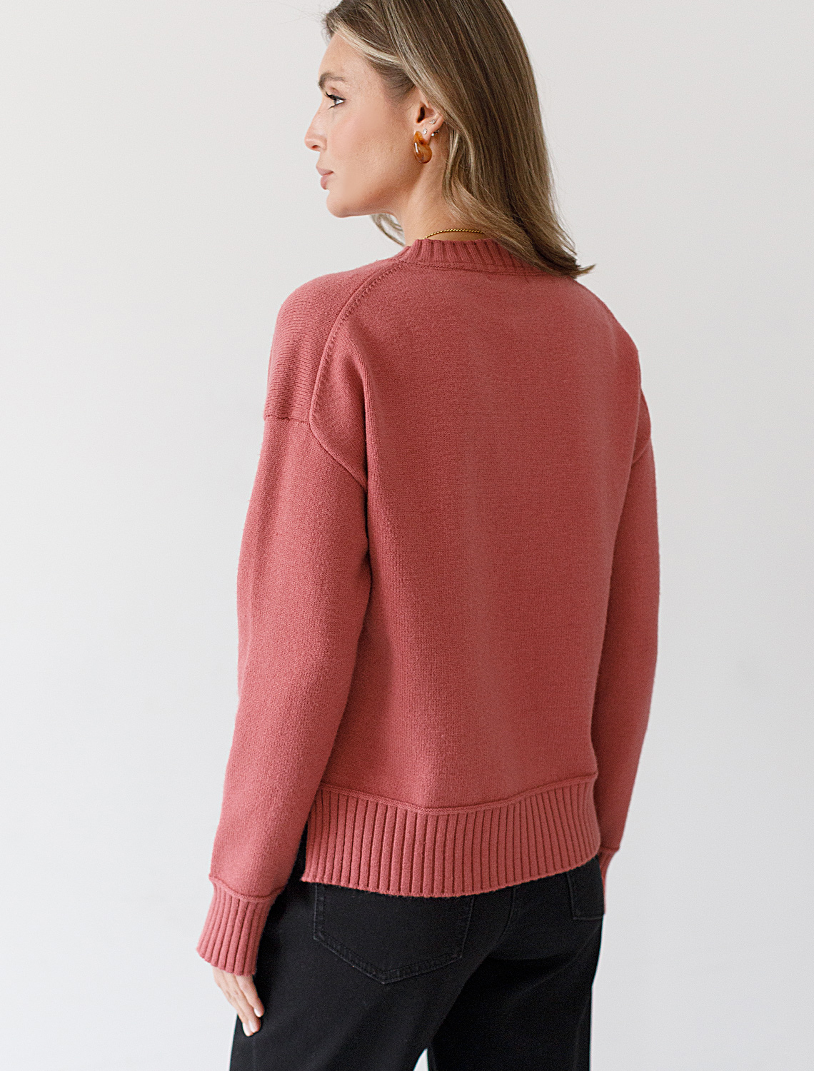 Укороченный джемпер темно-кораллового цвета с круглым вырезом связан из высококачественной пряжи с кашемиром — идеальное сочетание мягкости и практичности. Пряжа с кашемиром придаёт ему бархатистую нежность и тонкую структуру, каждое прикосновение с которой, напоминает о тепле и уюте в прохладные дни. Благодаря нежной текстуре материала этот вариант отлично подходит даже для чувствительной кожи, не вызывая раздражения и дискомфорта в течение дня. Сдержанный, элегантный силуэт джемпера подчёркивает вкуc обладательницы, а филигранная отделка ворота — внимание к деталям. Универсальный оттенок и изящная мягкость делают его идеальным выбором в любой ситуации Широкие манжеты и нижний край добавляют аккуратности, а продуманная посадка и небольшие разрезы по бокам делают повседневный джемпер удобным для многослойных образов — от офисного комплекта до расслабленного уикенда. Свободный крой джемпера идеально подходит для женщин, которые ценят удобство и стиль одновременно, а так же идеальноподходит на большие размеры. Благодаря качественной пряже свитер сохраняет форму и внешний вид даже после многократных носок.