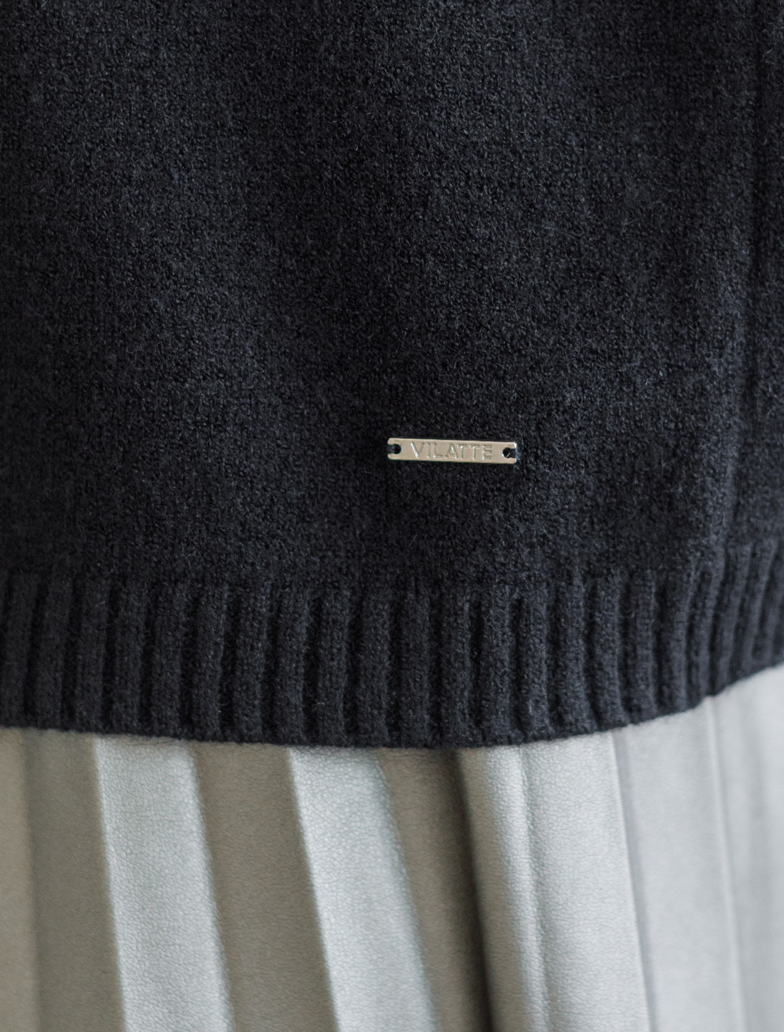 Джемпер выполнен из мягкой пряжи с кашемиром. Фишкой изделия являются свободные рукава на одном уровне с низом, это выгодно подчёркивает силуэт визуально вытягивая его. Мягкая пряжа очень приятная к телу, поддержит комфорт на протяжении всего дня, при этом не перегревая. Сочетается в костюме с брюками D38.013, D38.012 и юбкой D36.016 черный