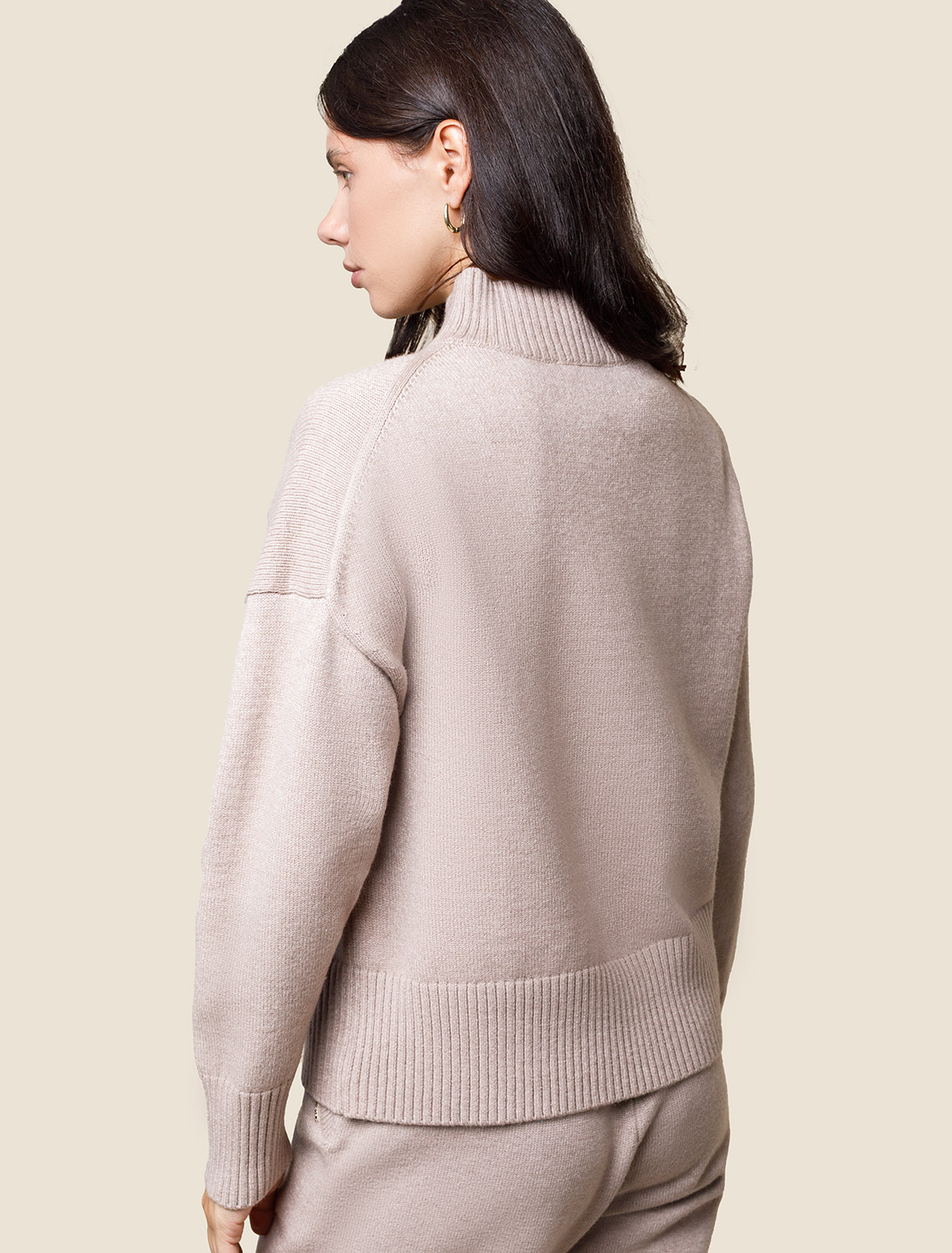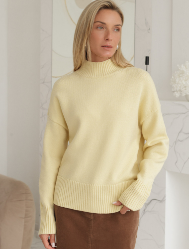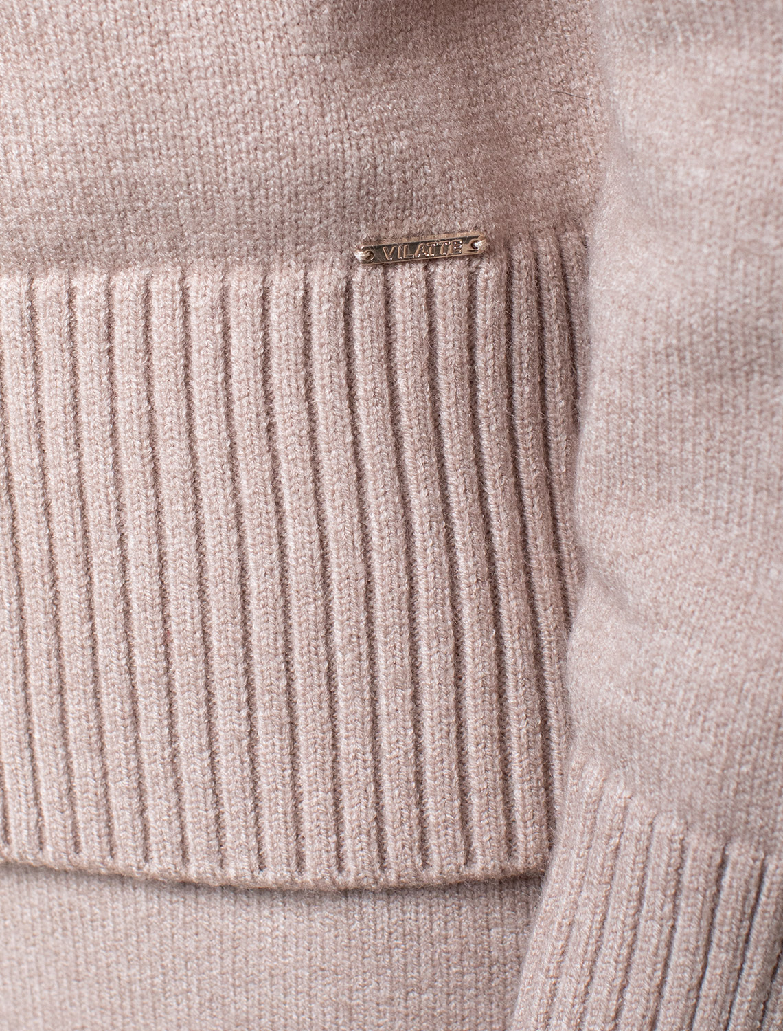 Свитер нейтрального цвета мокиато - сочетание бежевого и коричневого, с высоким воротом связан из высококачественной пряжи с кашемиром — идеальное сочетание мягкости и практичности. Пряжа с кашемиром придаёт ему бархатистую нежность и тонкую структуру, каждое прикосновение с которой, напоминает о тепле и уюте в прохладные дни. Благодаря нежной текстуре материала этот вариант отлично подходит даже для чувствительной кожи, не вызывая раздражения и дискомфорта в течение дня. Спущенная иния плеча придает свитеру расслабленный вид, подчеркивая актуальный стильный образ обладательницы. Универсальный крой и длина подходит для разных типов фигуры, в том числе и на большие размеры, свободный фасон не стесняет движений, а оверсайз силуэт актуален в этом сезоне и выглядит современно. Длинный рукав с широкими манжетами защищает от холода, делая этот вариант особенно практичным в осенне-зимний период. Такой теплый свитер станет надежным спутником в межсезонье и зимние дни, сочетая практичность, комфорт и стиль. Сочетается в костюме с брюками D38.013, D38.012 и юбкой D36.016 макиато меланж