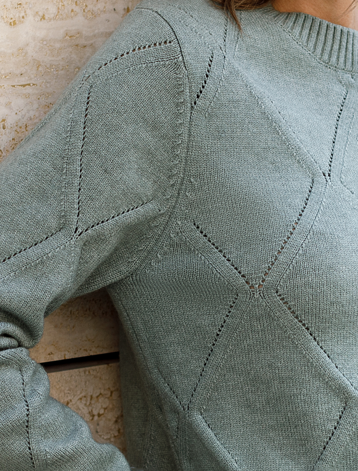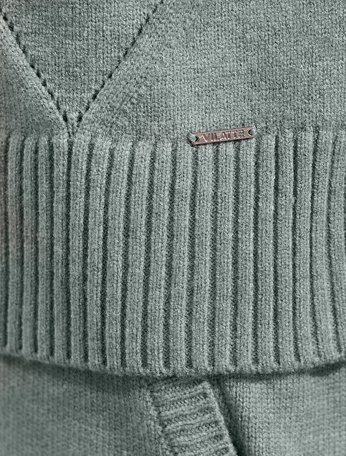 Невероятно женственный джемпер светло-оливкового цвета с круглым вырезом связан из высококачественной пряжи с кашемиром — идеальное сочетание мягкости и практичности. Пряжа с кашемиром придаёт ему бархатистую нежность и тонкую структуру, каждое прикосновение с которой, напоминает о тепле и уюте в прохладные дни. Благодаря нежной текстуре материала этот вариант отлично подходит даже для чувствительной кожи, не вызывая раздражения и дискомфорта в течение дня. Сдержанный, элегантный силуэт джемпера подчёркивает вкуc обладательницы, а филигранная отделка ворота — внимание к деталям. Фактурный графичный узор украшает джемпер, добавляя легкую нотку нарядности без лишней вычурности. Универсальный оттенок и изящная мягкость делают его идеальным выбором в любой ситуации. Широкие манжеты и нижний край добавляют аккуратности, а продуманная посадка делает повседневный джемпер удобным для многослойных образов — от офисного комплекта, например, в сочетании с блузкой, до расслабленного уикенда. Свободный крой джемпера идеально подходит для женщин, которые ценят удобство и стиль одновременно, а так же идеально подходит на большие размеры. Благодаря качественной пряже свитер сохраняет форму и внешний вид даже после многократных носок. Практичный фасон идеально подходит для работы в офисе или встреч с друзьями. Благодаря классическому крою джемпер гармонично сочетается практически с любыми элементами гардероба, помогая всегда выглядеть актуально. Сочетается в костюме с брюками D38.013, D38.012 и юбкой D36.016 светло-оливковый меланж