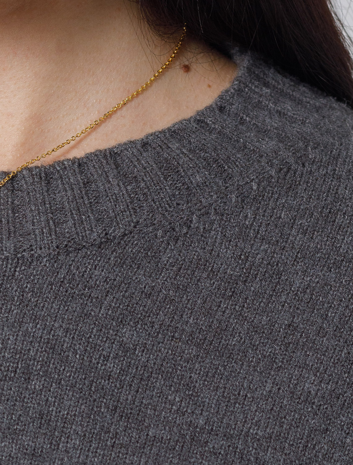 Укороченный джемпер темно-серого цвета с круглым вырезом связан из высококачественной пряжи с кашемиром — идеальное сочетание мягкости и практичности. Пряжа с кашемиром придаёт ему бархатистую нежность и тонкую структуру, каждое прикосновение с которой, напоминает о тепле и уюте в прохладные дни. Благодаря нежной текстуре материала этот вариант отлично подходит даже для чувствительной кожи, не вызывая раздражения и дискомфорта в течение дня. Сдержанный, элегантный силуэт джемпера подчёркивает вкуc обладательницы, а филигранная отделка ворота — внимание к деталям. Универсальный оттенок и изящная мягкость делают его идеальным выбором в любой ситуации Широкие манжеты и нижний край добавляют аккуратности, а продуманная посадка и небольшие разрезы по бокам делают повседневный джемпер удобным для многослойных образов — от офисного комплекта до расслабленного уикенда. Свободный крой джемпера идеально подходит для женщин, которые ценят удобство и стиль одновременно, а так же идеальноподходит на большие размеры. Благодаря качественной пряже свитер сохраняет форму и внешний вид даже после многократных носок.