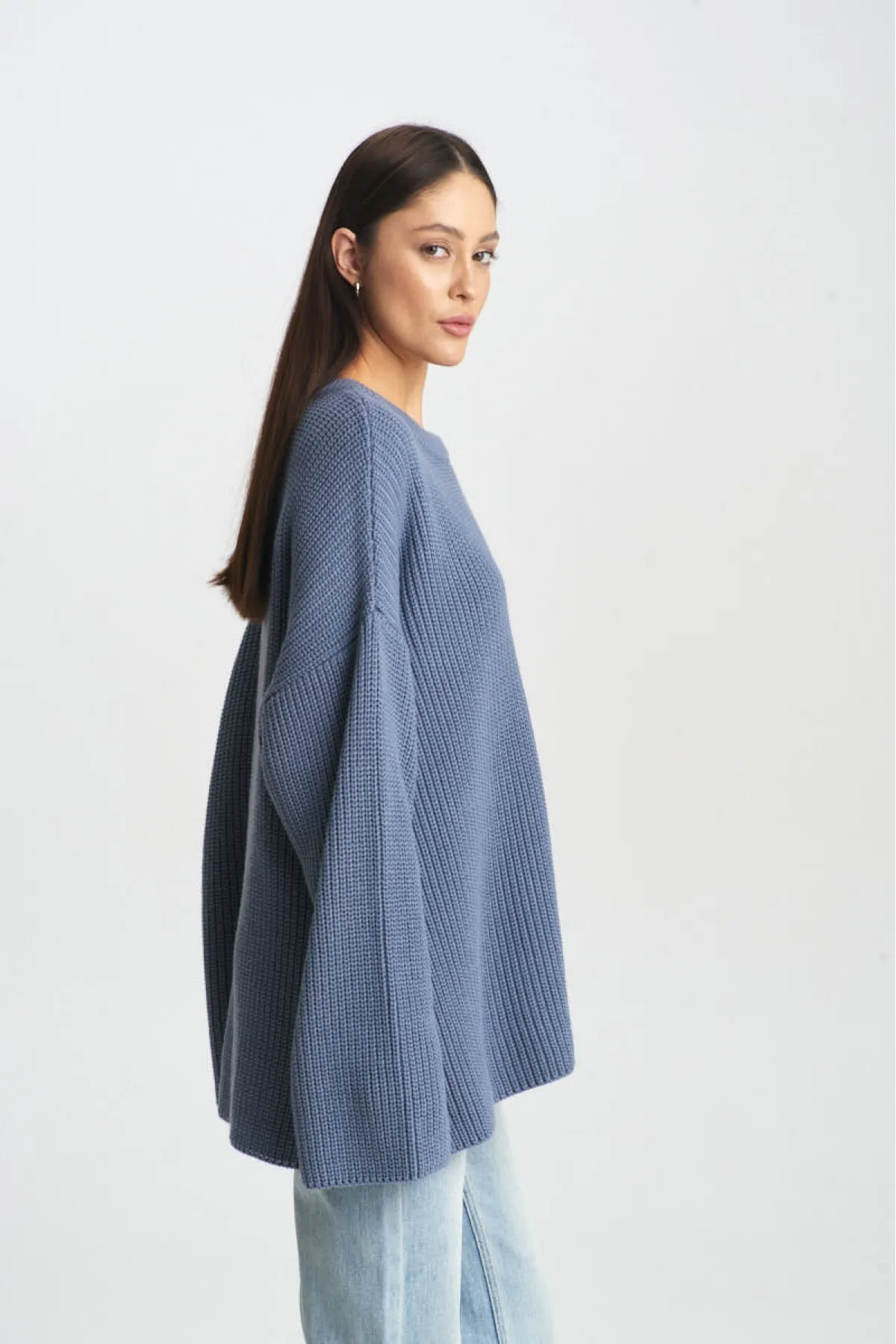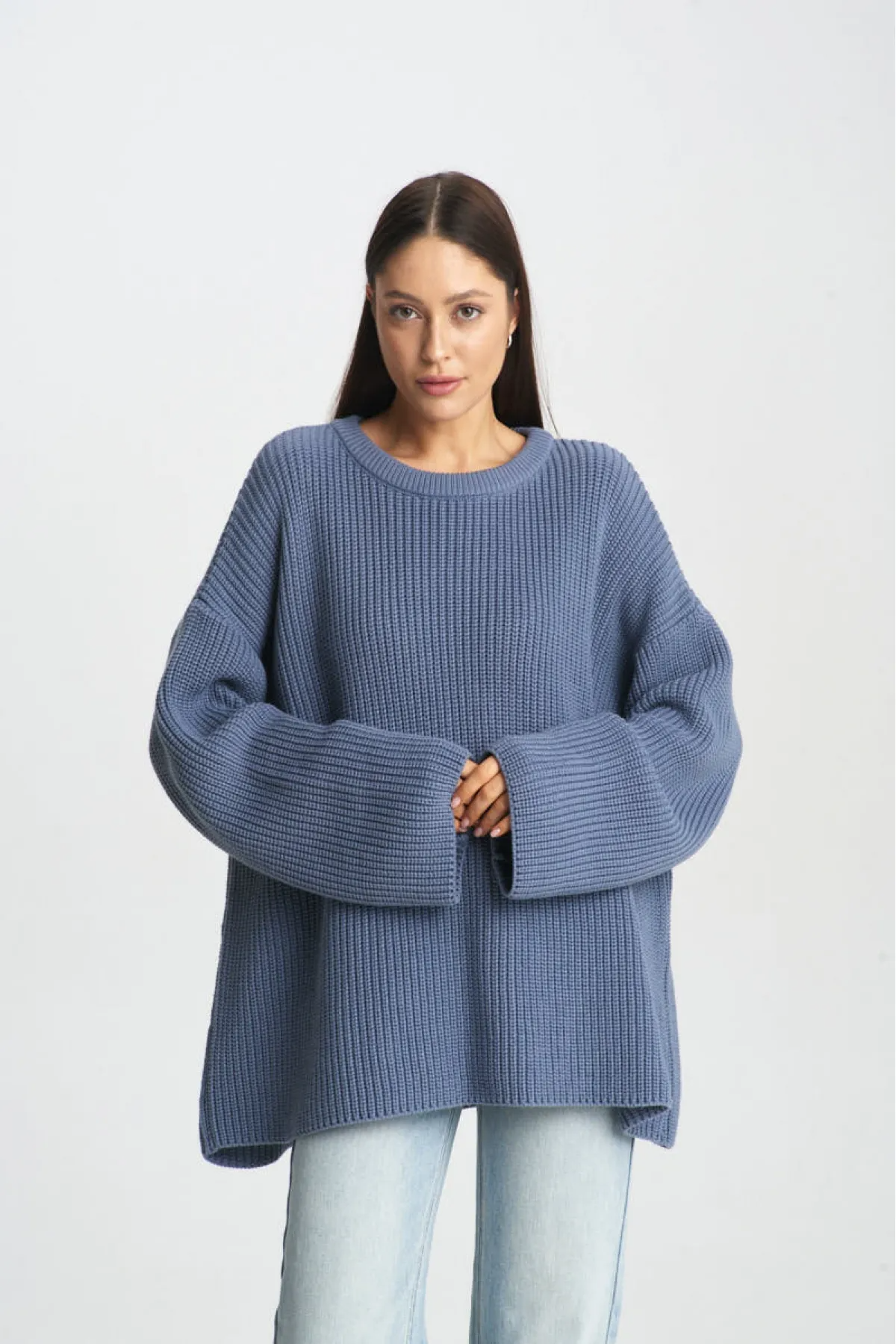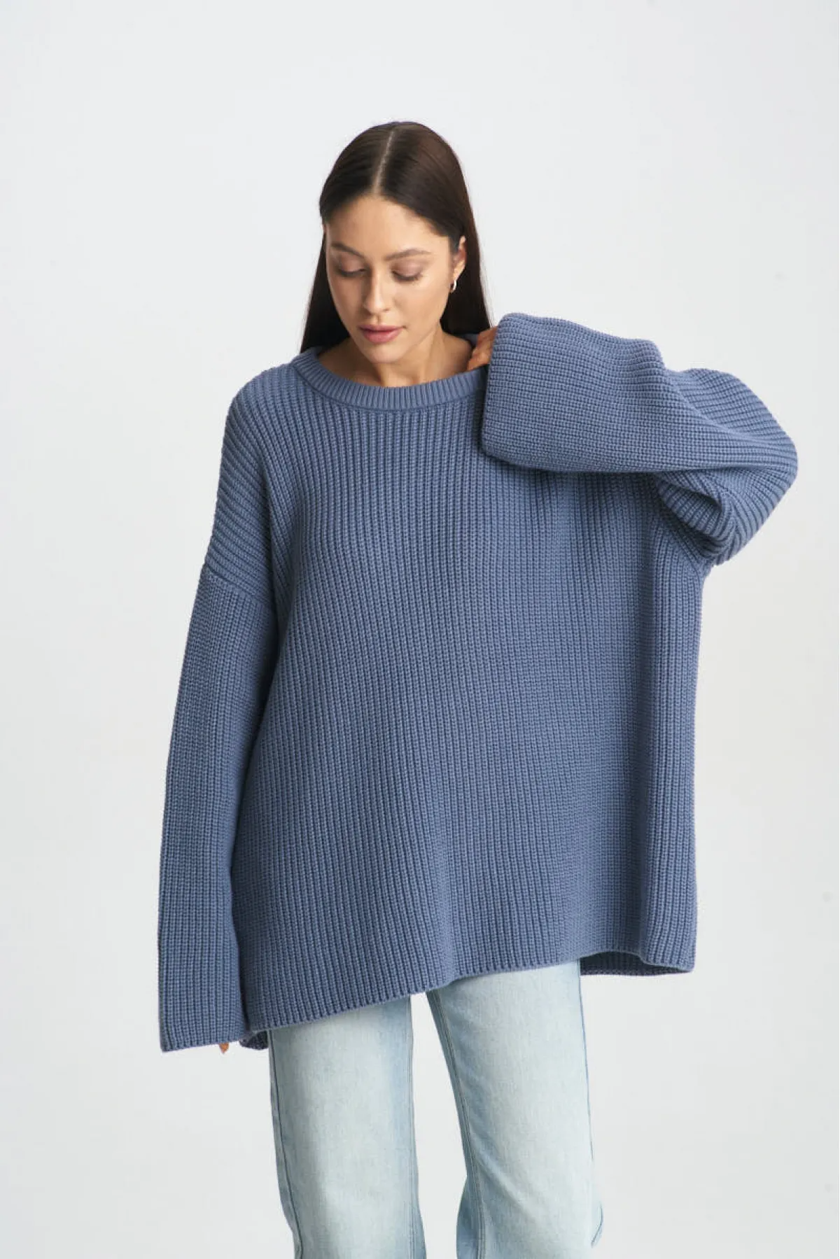 Его свободный крой и широкие длинные рукава обеспечивают максимальный комфорт и свободу движений. Джемпер отлично подходит как самостоятельный элемент образа, так и для создания многослойных луков, что делает его универсальным вариантом.