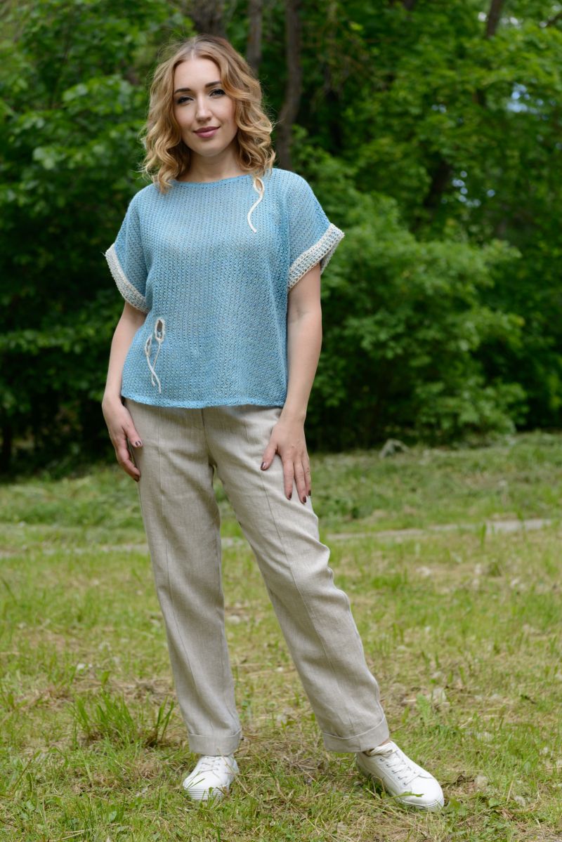 Описание: Джемпер-майка, с закругленной линией низ, линия плеча спущена, отделка, трикотаж.