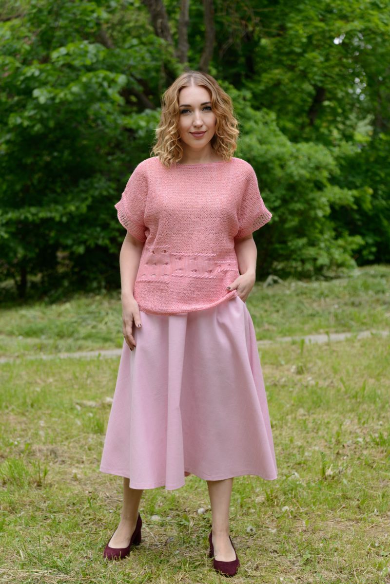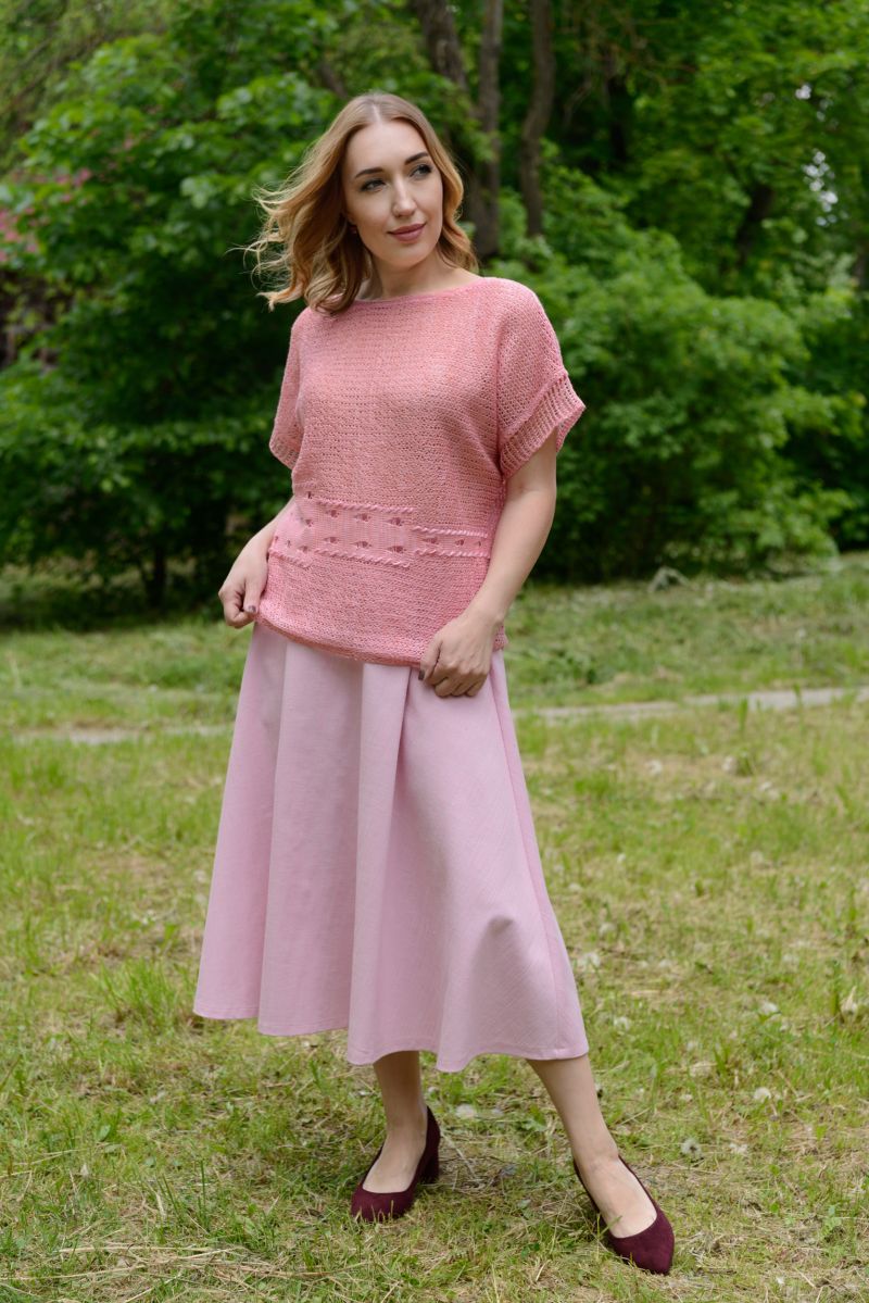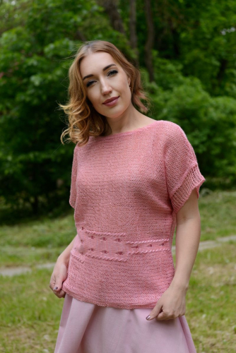 Описание: Джемпер-майка, линия плеча спущенная, отделка, трикотаж.