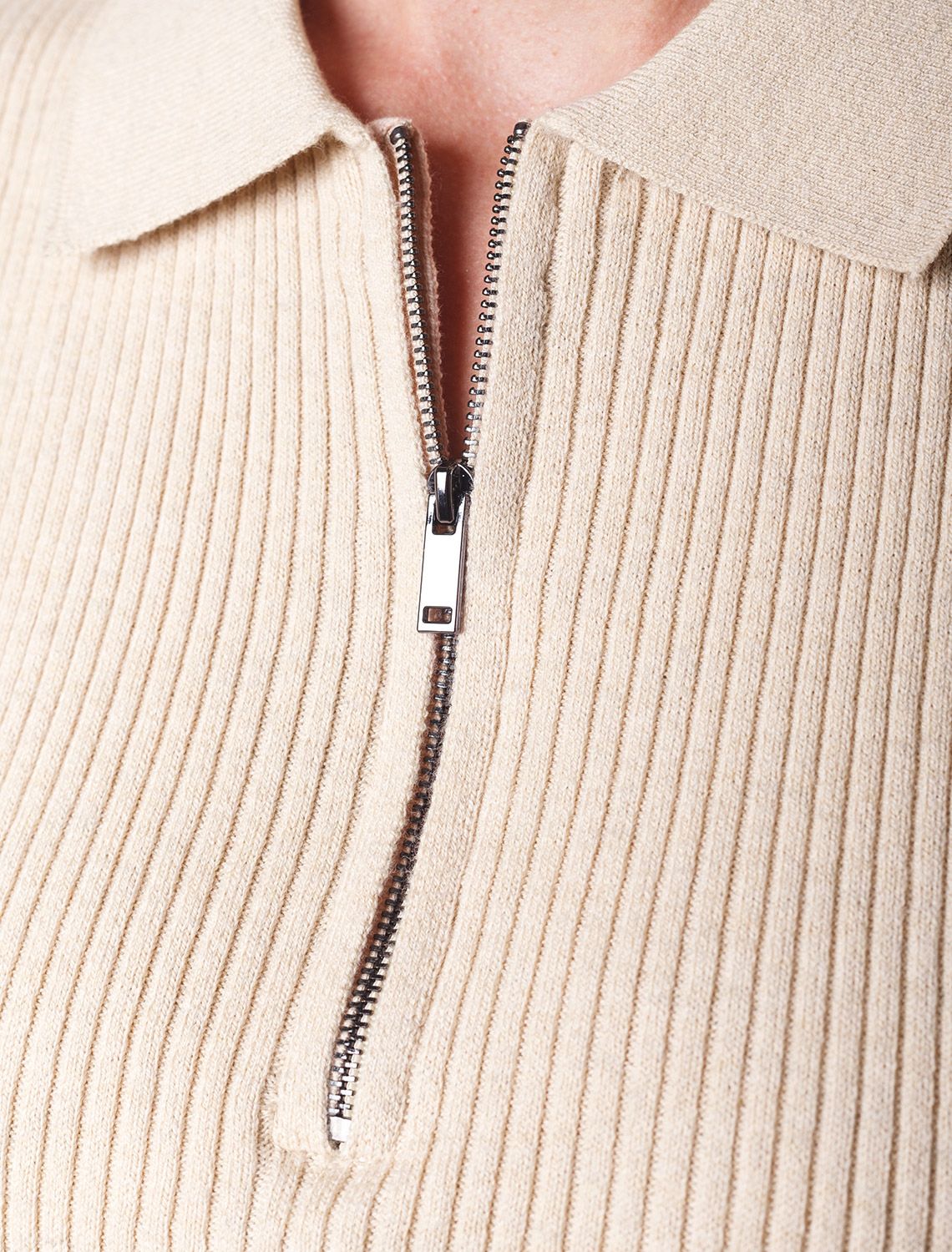 Джемпер-поло с застежкой на молнии из хлопка с кашемиром D39.351 бежевый меланж