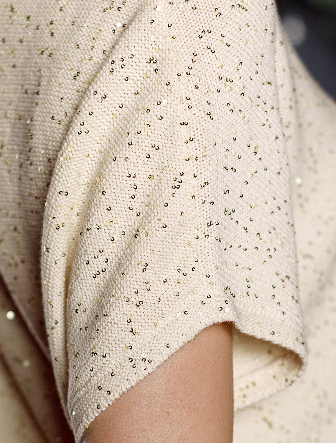 Легкий джемпер бежевого цвета с цельнокроенным коротким рукавом выполнен из хлопковой пряжи с вкраплением сияющих пайеток, что придает особую изысканность. Стильный джемпер связан изнанкой, пряжа отличается легкостью и приятной текстурой, совершенно не колется, обеспечивает комфорт даже при длительном использовании, а натуральные волокна поддерживают оптимальный температурный баланс. Свободный крой и цельнокроенный рукав создают расслабленный, но аккуратный образ. Нарядный джемпер подойдет девушкам и женщинам больших размеров, в нем вы будете чувствовать себя уверенно и свободно в любой ситуации. Мерцающий эффект пайеток добавляет образу выразительности и индивидуальности. Мерцающее полотно добавляет особого шарма вашему образу, делая его уместным как на праздник, так и для повседневного выхода. Новый год, вечеринка или любое другое мероприятие пройдут ярко — сияющие пайетки создают ощущение праздника в каждом движении. Для спокойного повседневного аутфита добавьте к этому эффектному джемперу спокойный низ, близкий по цвету, без дополнительных элементов декора.