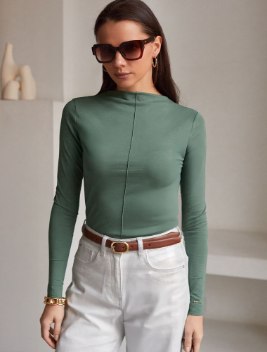Джемпер прямого силуэта с цельнокроеным воротом выполнен из премиального хлопка. Наличие эластана в составе гарантирует комфорт и формоустойчивостиь изделия. Вертикальный декоративный шов спереди, визуально вытягивает силуэт. Базовая модель хорошо впишется в любой гардероб и подойдет для офисного дресс-кода. К изделию пришит металлический логотип бренда.