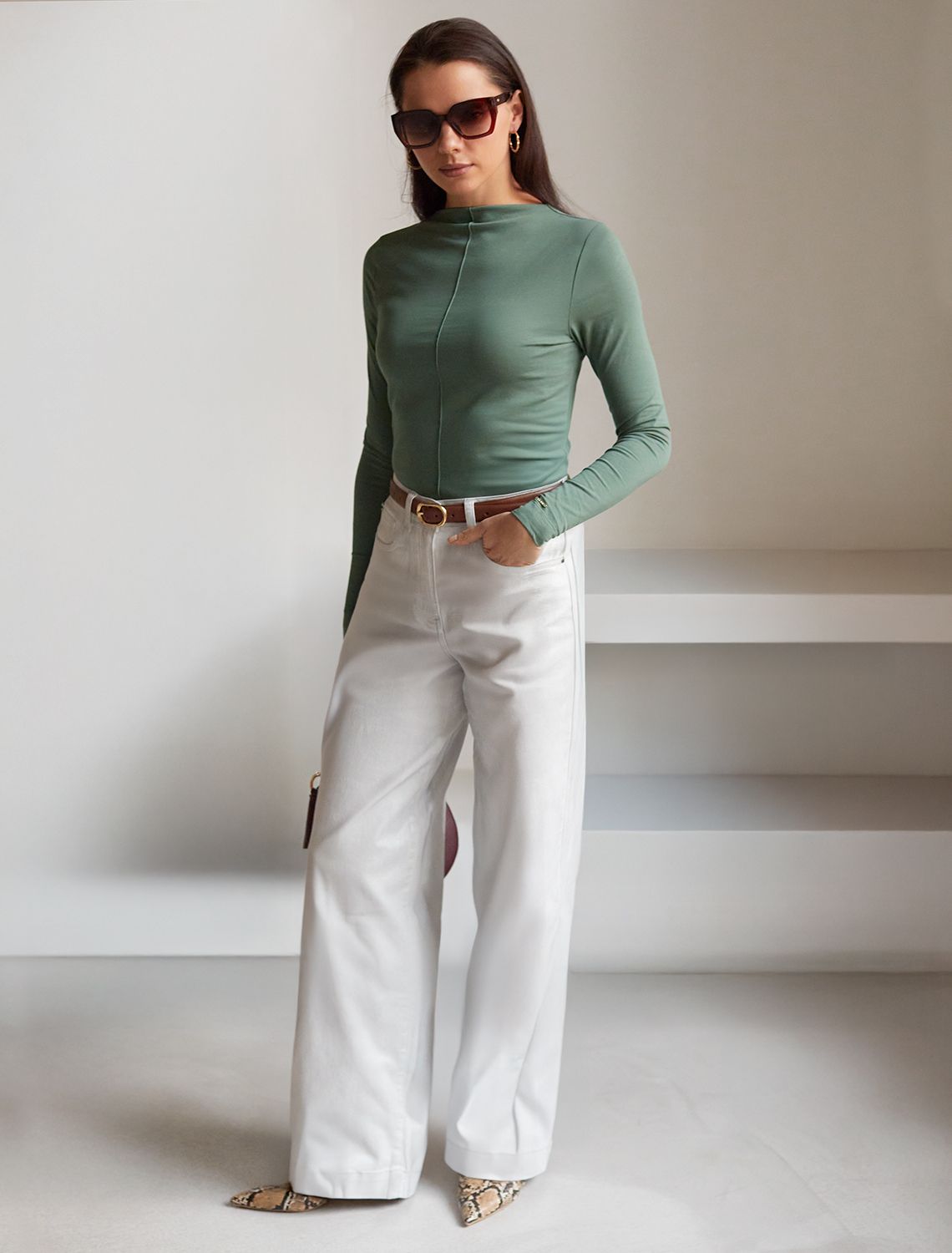 Джемпер с цельнокроеным воротом из премиального хлопка D49.113 оливковый