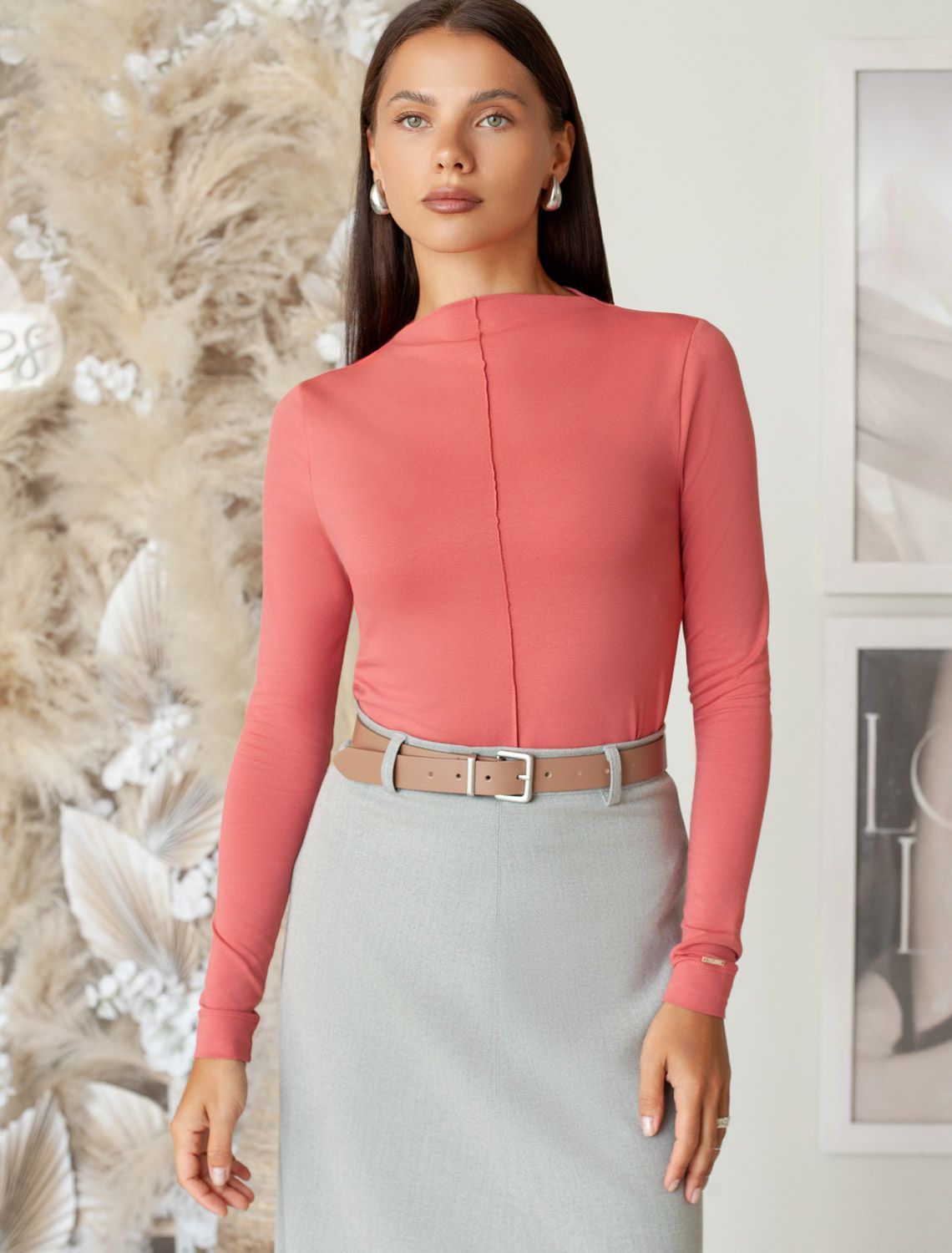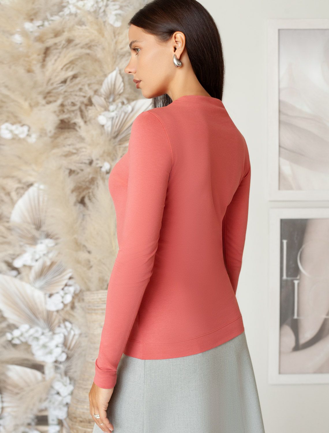 Джемпер с цельнокроеным воротом из премиального хлопка D49.113 терракота