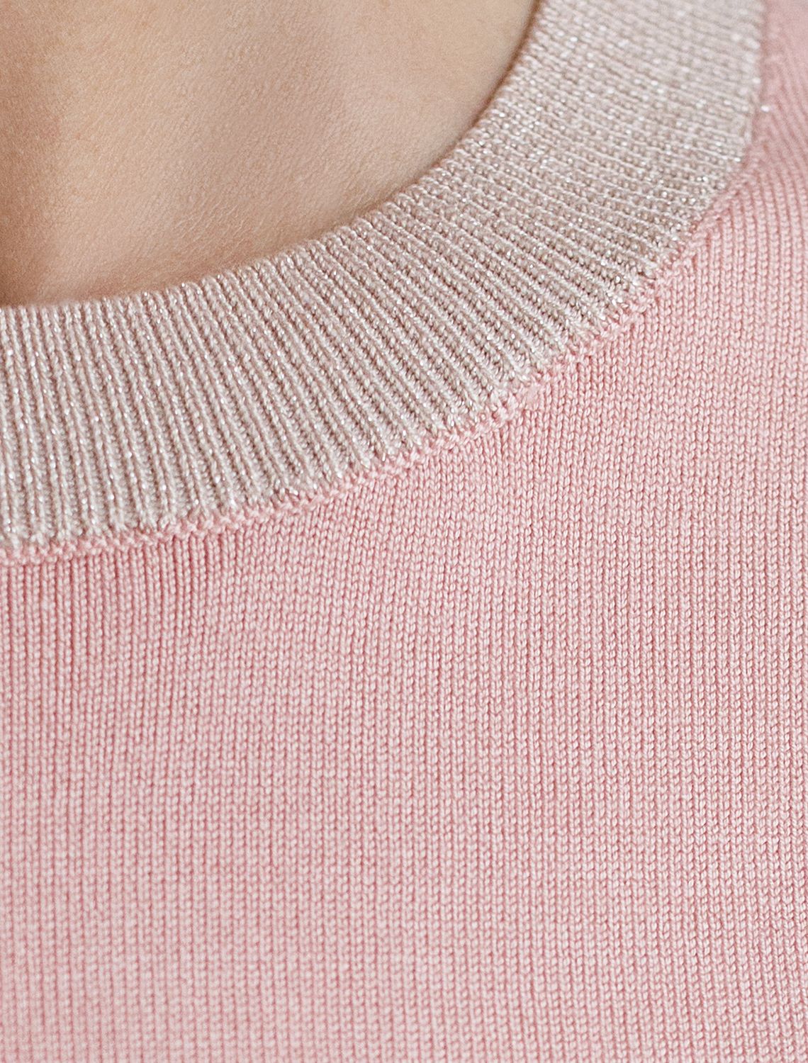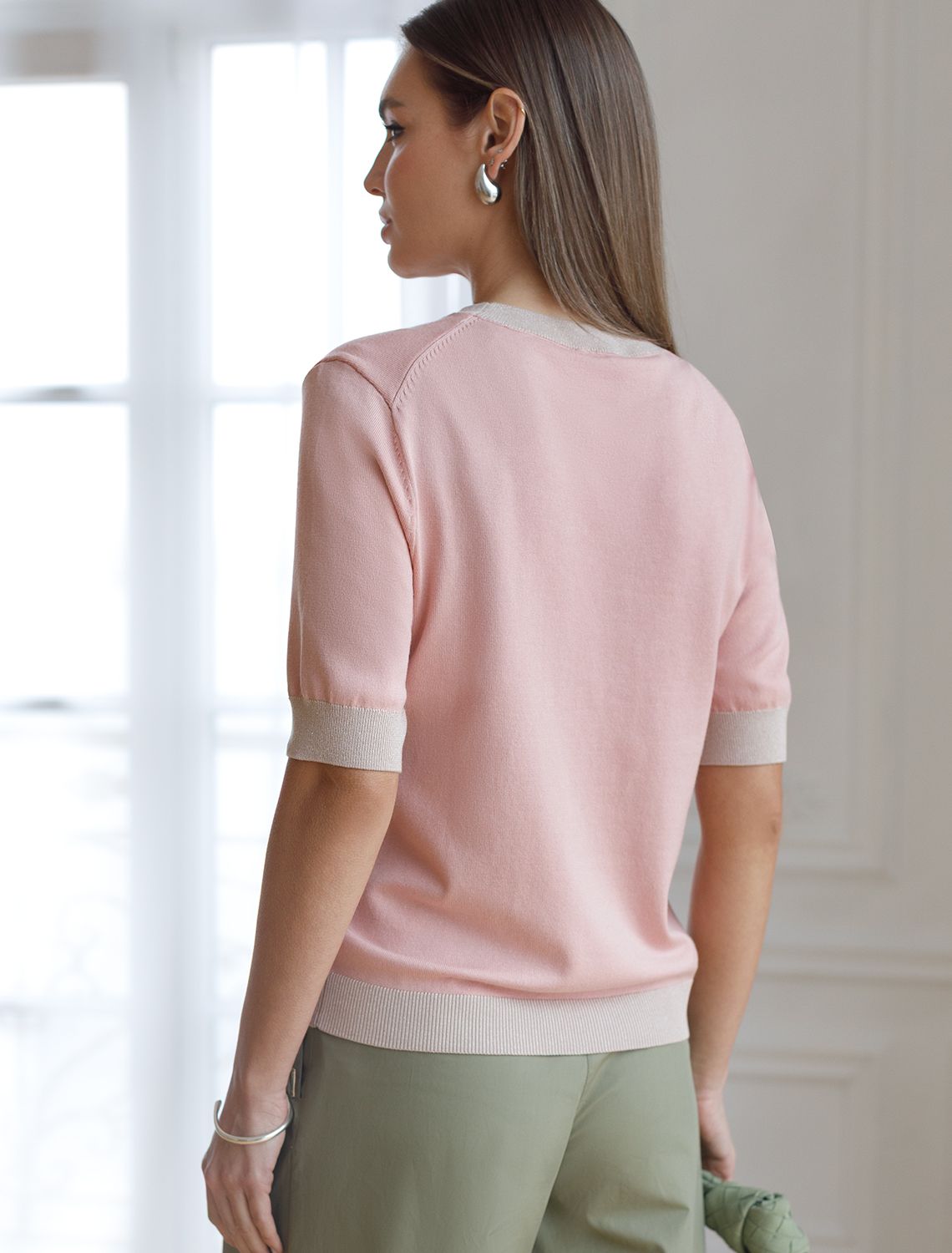 Джемпер с коротким рукавом тонкой вязки из вискозы с люрексом D39.388 светло-розовый