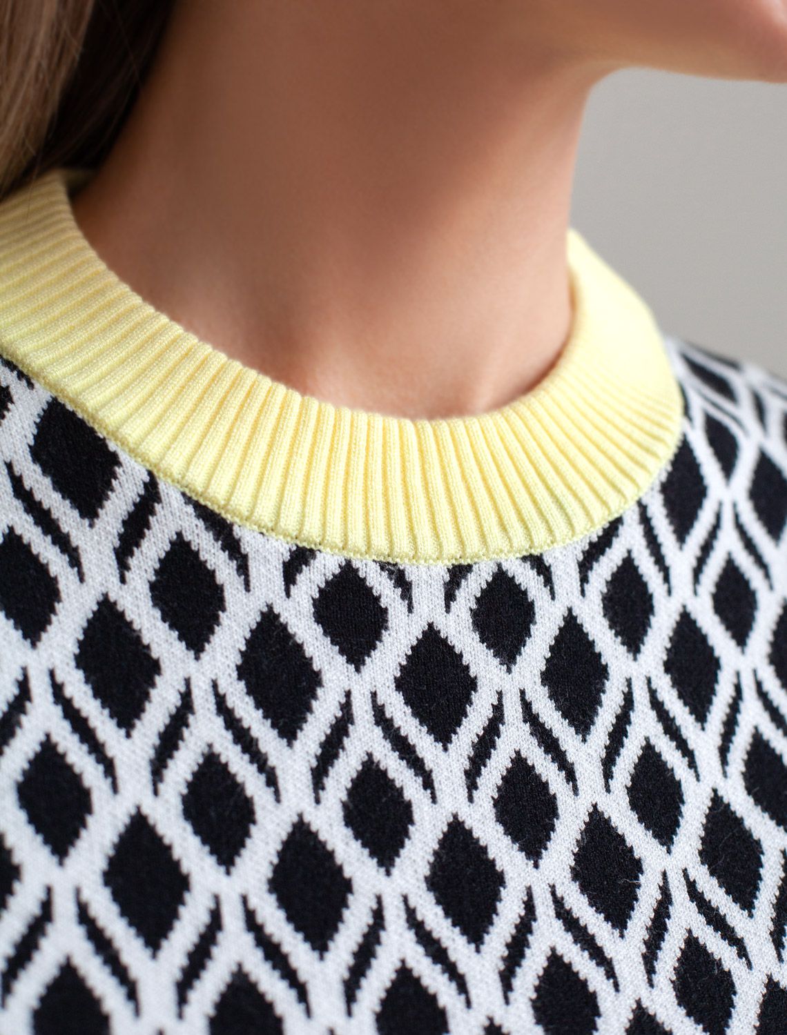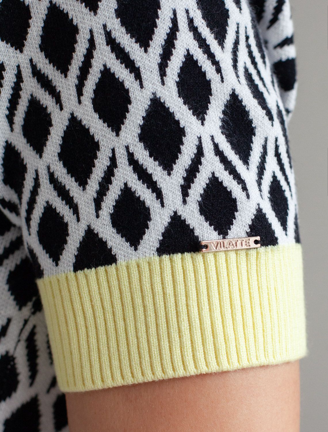 Джемпер с коротким рукавом жаккардовой вязки с принтом ромб D39.402 белый-черный