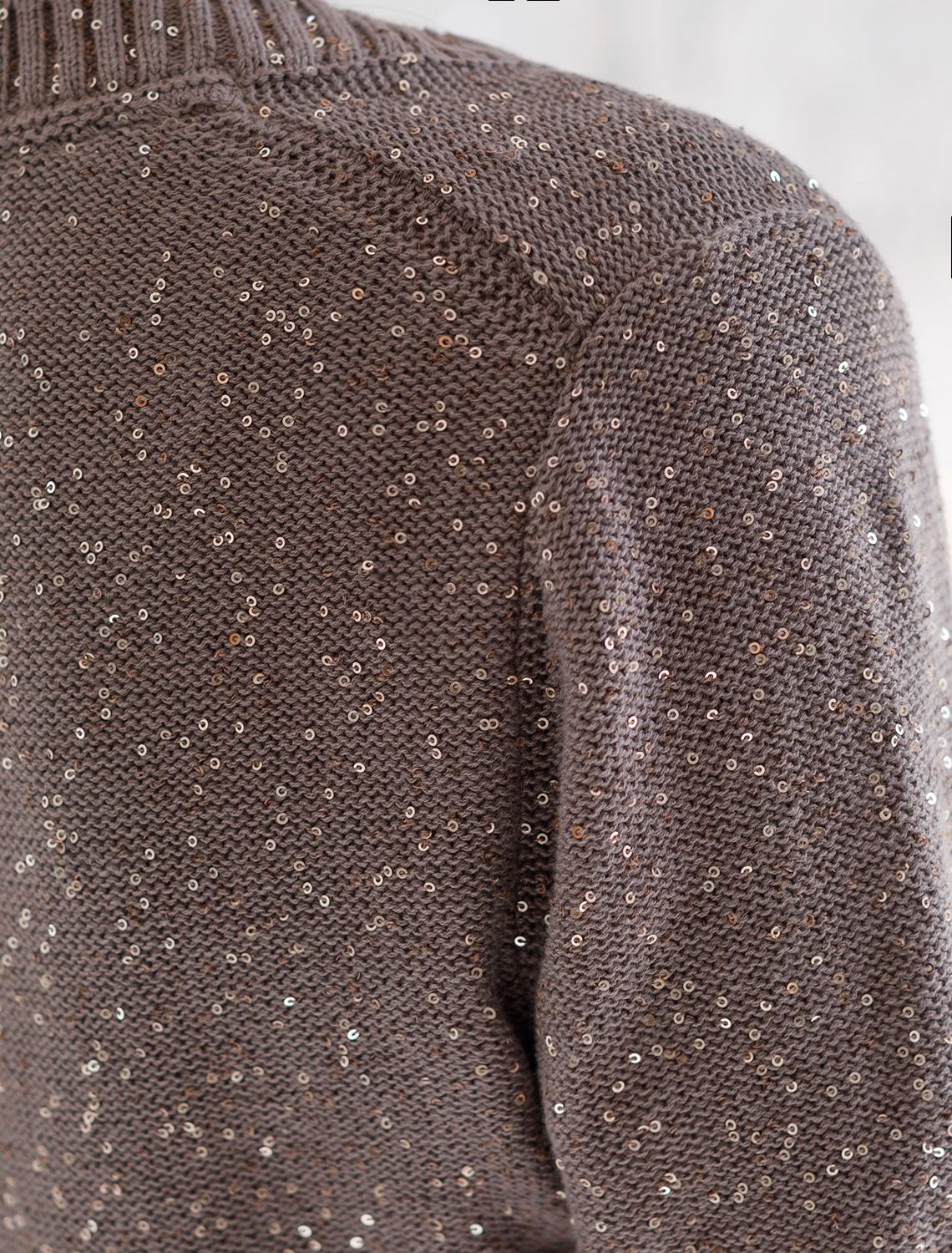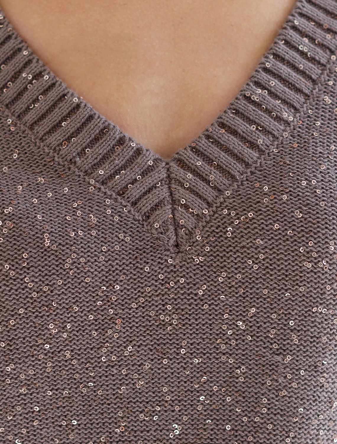Джемпер с V вырезом и коротким рукавом из хлопковой пряжи с пайетками D39.371 кофейный