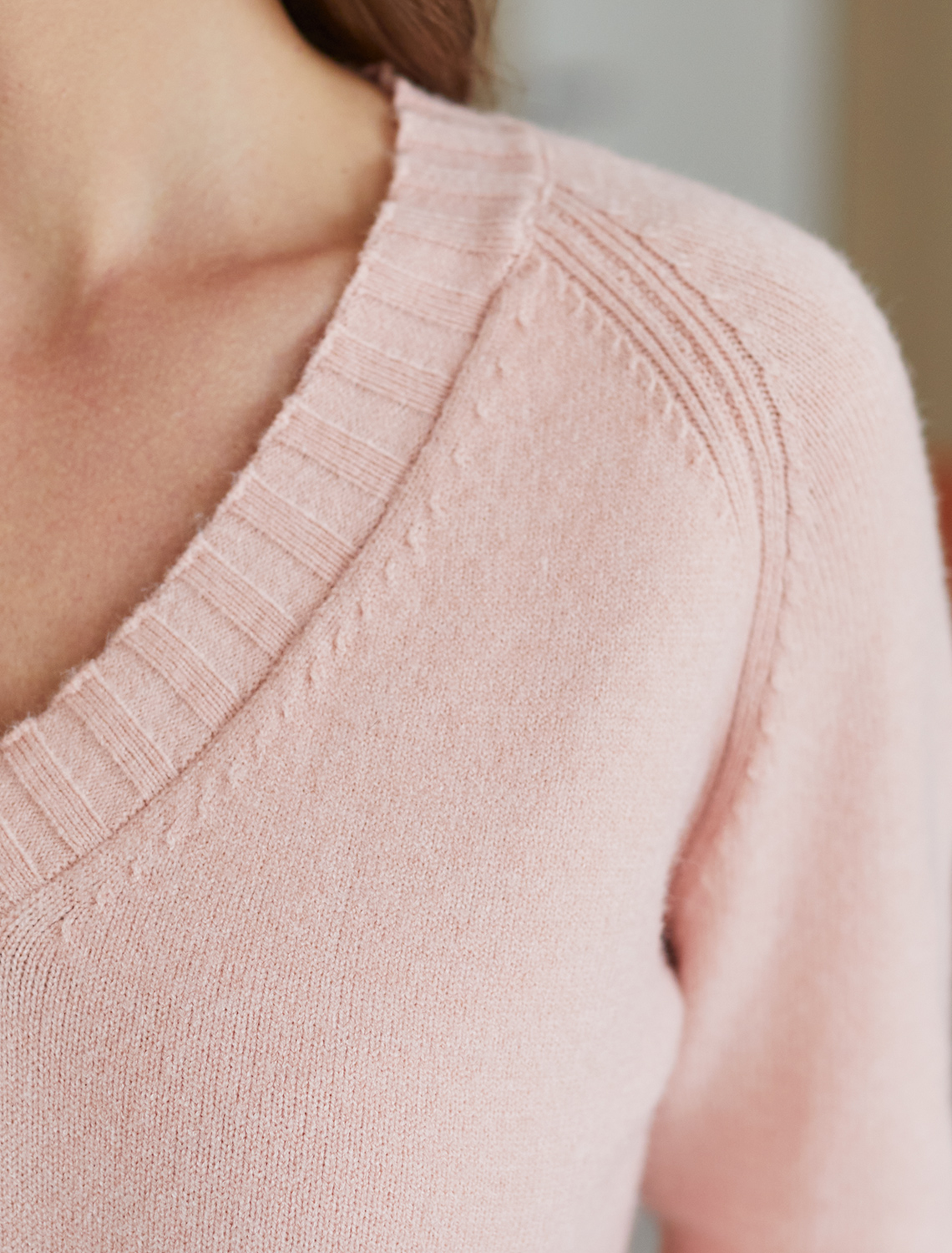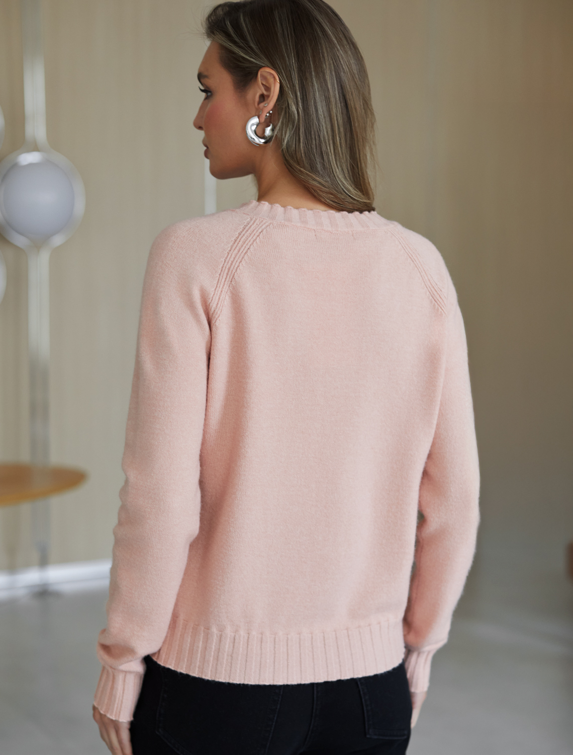 Невероятно женственный джемпер пудрового цвета с V вырезом связан из высококачественной пряжи с кашемиром — идеальное сочетание мягкости и практичности. Пряжа с кашемиром придаёт ему бархатистую нежность и тонкую структуру, каждое прикосновение с которой, напоминает о тепле и уюте в прохладные дни. Благодаря нежной текстуре материала этот вариант отлично подходит даже для чувствительной кожи, не вызывая раздражения и дискомфорта в течение дня. Сдержанный, элегантный силуэт джемпера подчёркивает вкуc обладательницы, а филигранная отделка ворота — внимание к деталям. Универсальный оттенок и изящная мягкость делают его идеальным выбором в любой ситуации. Широкие манжеты и нижний край добавляют аккуратности, а продуманная посадка делает повседневный джемпер удобным для многослойных образов — от офисного комплекта, например, в сочетании с блузкой, до расслабленного уикенда. Свободный крой джемпера идеально подходит для женщин, которые ценят удобство и стиль одновременно, а так же идеально подходит на большие размеры. Благодаря качественной пряже свитер сохраняет форму и внешний вид даже после многократных носок. Практичный фасон идеально подходит для работы в офисе или встреч с друзьями. Благодаря классическому крою джемпер гармонично сочетается практически с любыми элементами гардероба, помогая всегда выглядеть актуально. Сочетается в костюме с брюками D38.013, D38.012 и юбкой D36.016 пудровый