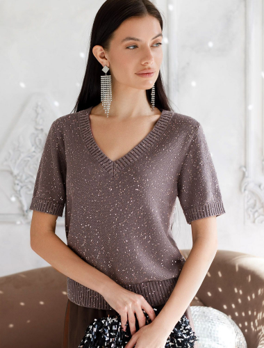 Невероятно женственный джемпер темно-серого цвета с V вырезом связан из высококачественной пряжи с кашемиром — идеальное сочетание мягкости и практичности. Пряжа с кашемиром придаёт ему бархатистую нежность и тонкую структуру, каждое прикосновение с которой, напоминает о тепле и уюте в прохладные дни. Благодаря нежной текстуре материала этот вариант отлично подходит даже для чувствительной кожи, не вызывая раздражения и дискомфорта в течение дня. Сдержанный, элегантный силуэт джемпера подчёркивает вкуc обладательницы, а филигранная отделка ворота — внимание к деталям. Универсальный оттенок и изящная мягкость делают его идеальным выбором в любой ситуации. Широкие манжеты и нижний край добавляют аккуратности, а продуманная посадка делает повседневный джемпер удобным для многослойных образов — от офисного комплекта, например, в сочетании с блузкой, до расслабленного уикенда. Свободный крой джемпера идеально подходит для женщин, которые ценят удобство и стиль одновременно, а так же идеально подходит на большие размеры. Благодаря качественной пряже свитер сохраняет форму и внешний вид даже после многократных носок. Практичный фасон идеально подходит для работы в офисе или встреч с друзьями. Благодаря классическому крою джемпер гармонично сочетается практически с любыми элементами гардероба, помогая всегда выглядеть актуально. Сочетается в костюме с брюками D38.013, D38.012 и юбкой D36.016