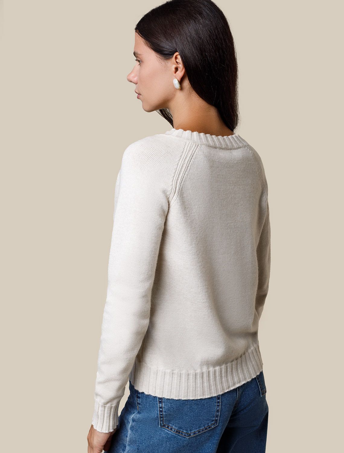 Невероятно женственный джемпер овсяного цвета с V вырезом связан из высококачественной пряжи с кашемиром — идеальное сочетание мягкости и практичности. Пряжа с кашемиром придаёт ему бархатистую нежность и тонкую структуру, каждое прикосновение с которой, напоминает о тепле и уюте в прохладные дни. Благодаря нежной текстуре материала этот вариант отлично подходит даже для чувствительной кожи, не вызывая раздражения и дискомфорта в течение дня. Сдержанный, элегантный силуэт джемпера подчёркивает вкуc обладательницы, а филигранная отделка ворота — внимание к деталям. Универсальный оттенок и изящная мягкость делают его идеальным выбором в любой ситуации. Широкие манжеты и нижний край добавляют аккуратности, а продуманная посадка делает повседневный джемпер удобным для многослойных образов — от офисного комплекта, например, в сочетании с блузкой, до расслабленного уикенда. Свободный крой джемпера идеально подходит для женщин, которые ценят удобство и стиль одновременно, а так же идеально подходит на большие размеры. Благодаря качественной пряже свитер сохраняет форму и внешний вид даже после многократных носок. Практичный фасон идеально подходит для работы в офисе или встреч с друзьями. Благодаря классическому крою джемпер гармонично сочетается практически с любыми элементами гардероба, помогая всегда выглядеть актуально. Сочетается в костюме с брюками D38.013, D38.012 и юбкой D36.016