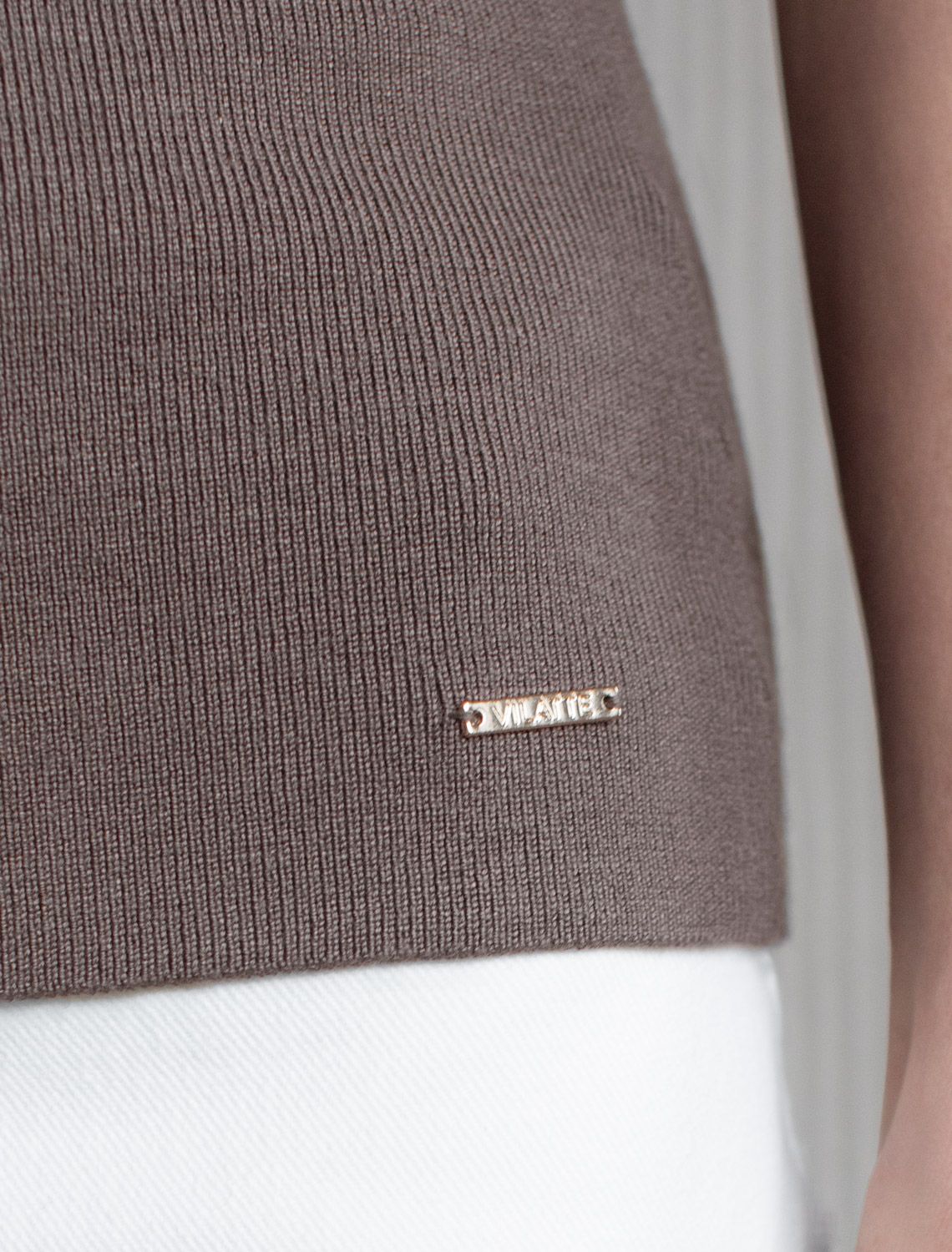 Легкий джемпер кофейного цвета с V-вырезом и отложным воротником идеально подходит на весну и лето. Вязка в тонкий рубчик из вискозы дарит приятный комфорт и ощущение свежести в теплую погоду. Полуприлегающий крой подчеркивает силуэт, а универсальная длина позволяет сочетать джемпер с разными элементами гардероба. Контрастная отделка в виде тонких полосок добавляет стильный акцент, создавая выразительный образ. V-вырез подчеркивает зону декольте и визуально вытягивает шею, делая фигуру более изящной, а классический отложной воротник делает внешний вид более аккуратным и завершенным. Джемпер отлично смотрится на больших размерах благодаря продуманному крою и полуприлегающему фасону. Этот джемпер с коротким рукавом станет незаменимой частью гардероба в сезоны, когда хочется легкости и элегантности одновременно. Лаконичный дизайн обеспечивает простоту комбинирования с другими вещами и будет универсальной базой для создания разнообразных комплектов — от офисного до непринужденного городского стиля.