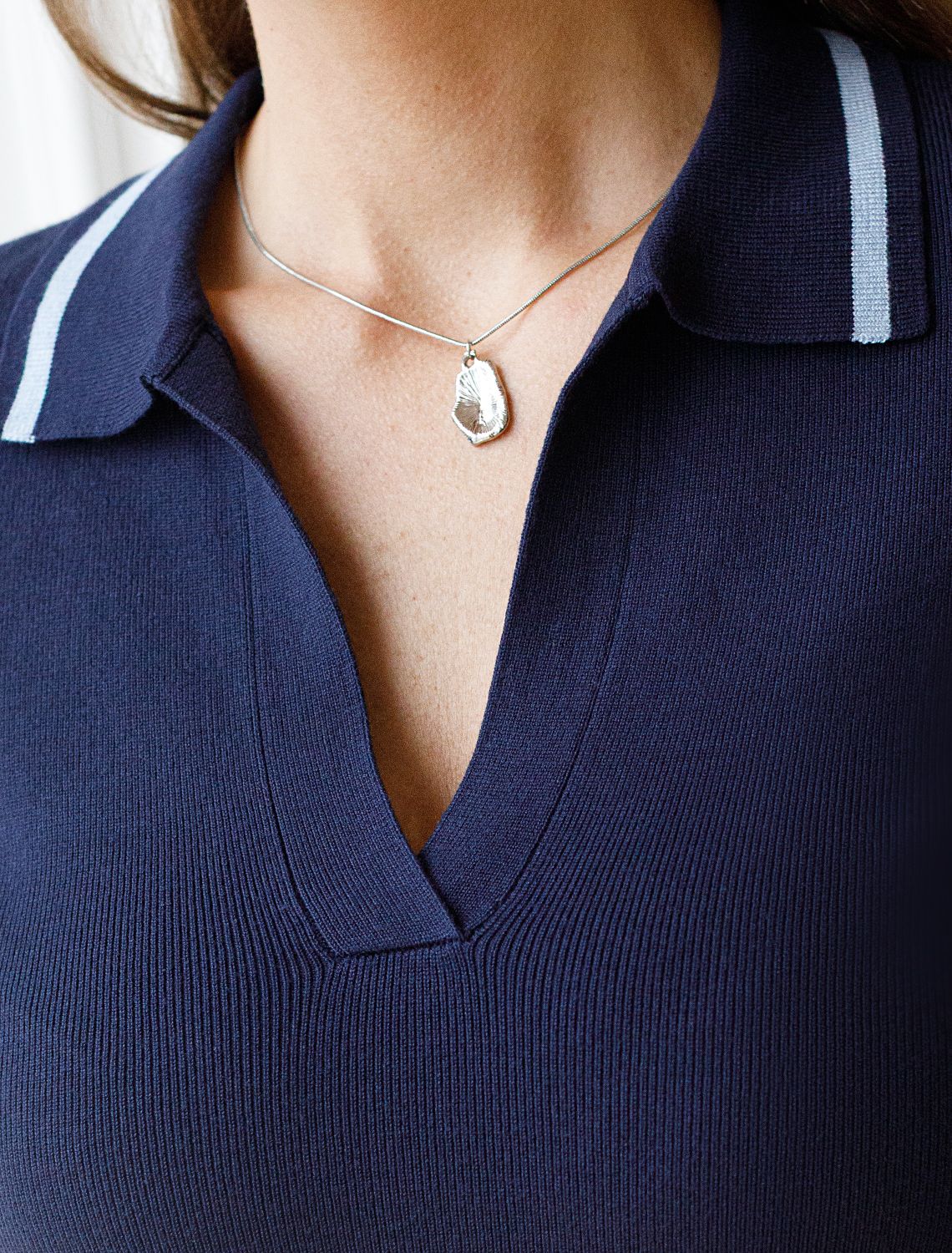 Легкий джемпер темно-синего цвета с V-вырезом и отложным воротником идеально подходит на весну и лето. Вязка в тонкий рубчик из вискозы дарит приятный комфорт и ощущение свежести в теплую погоду. Полуприлегающий крой подчеркивает силуэт, а универсальная длина позволяет сочетать джемпер с разными элементами гардероба. Контрастная отделка в виде тонких полосок добавляет стильный акцент, создавая выразительный образ. V-вырез подчеркивает зону декольте и визуально вытягивает шею, делая фигуру более изящной, а классический отложной воротник делает внешний вид более аккуратным и завершенным. Джемпер отлично смотрится на больших размерах благодаря продуманному крою и полуприлегающему фасону. Этот джемпер с коротким рукавом станет незаменимой частью гардероба в сезоны, когда хочется легкости и элегантности одновременно. Лаконичный дизайн обеспечивает простоту комбинирования с другими вещами и будет универсальной базой для создания разнообразных комплектов — от офисного до непринужденного городского стиля.