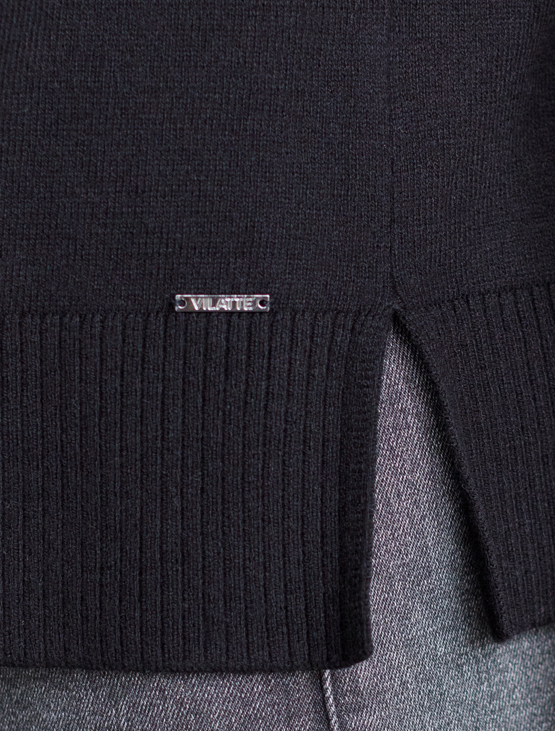 Джемпер тонкой вязки выполнен из хлопка с добавлением кашемира. Лаконичная модель дополнена декоративными швами и разрезами по бокам. Мягкая и очень приятная пряжа совершенно не колется, сохраняет тепло при этом не перегревая, гарантируя безупречный комфорт. черный