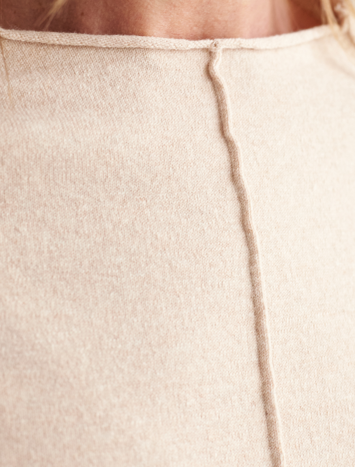 Джемпер тонкой вязки выполнен из мягкой хлопковой пряжи. Модель с декоративными швами идеально сидит по фигуре подчеркиваяч изгибы тела. Подходит для любой фигуры и впишется в любой гардероб. Изделие дополнено металлическим логотипом бренда. бежевый меланж