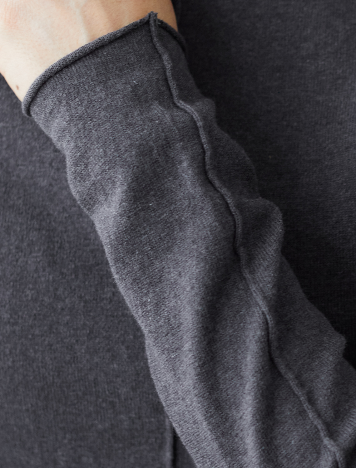 Джемпер тонкой вязки выполнен из мягкой хлопковой пряжи. Модель с декоративными швами идеально сидит по фигуре подчеркиваяч изгибы тела. Подходит для любой фигуры и впишется в любой гардероб. Изделие дополнено металлическим логотипом бренда. серый меланж